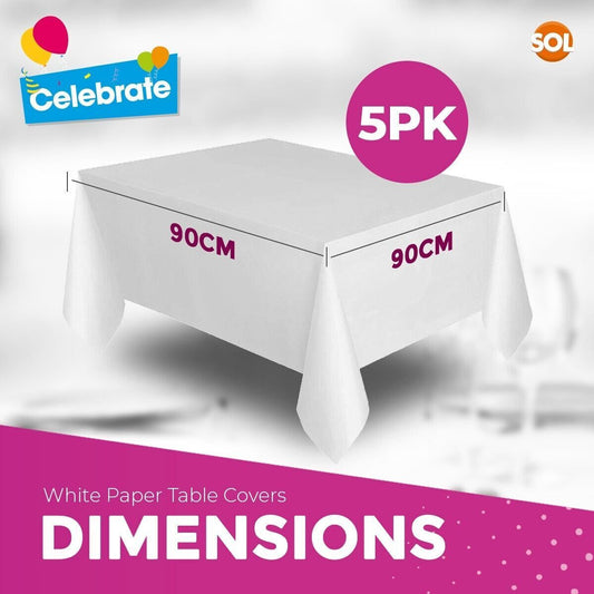 White Paper Table Cloth Square Disposable Party Tablecloth | 15 Pack