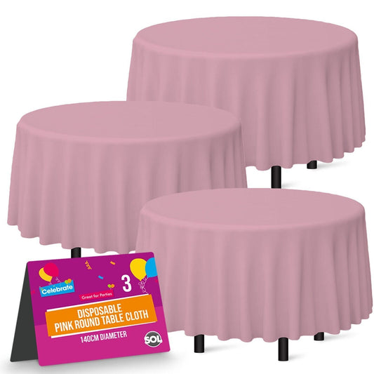 Plastic Table Covers Round 1.4M | Disposable Wipe Clean Party Cloth | 3 Pack
