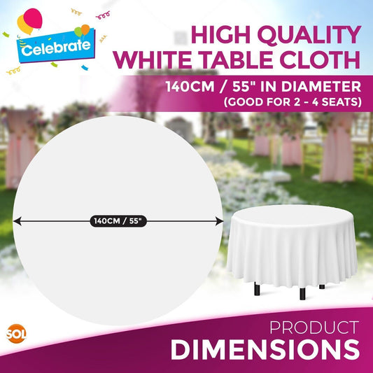 White Plastic Round Table Covers 140cm | Disposable Wipe Clean Party Cloth | 3 Pack
