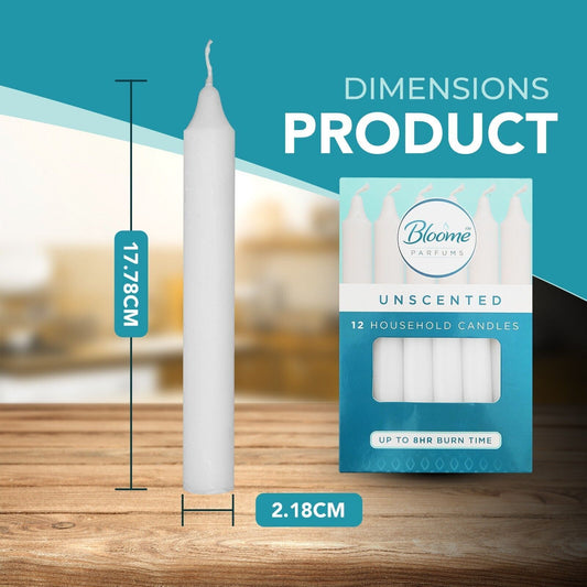 White Dinner Taper Candles 2x18cm | Unscented Long Burn | 12 Pack