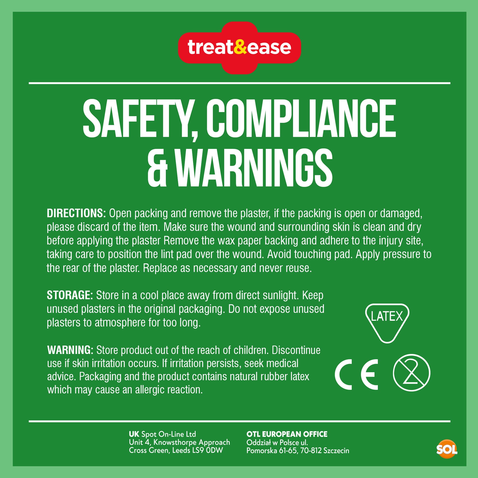 Each plaster is individually wrapped for convenience and hygiene. The first aid adhesive plasters are easy to apply and remove, making them suitable for quick response situations.