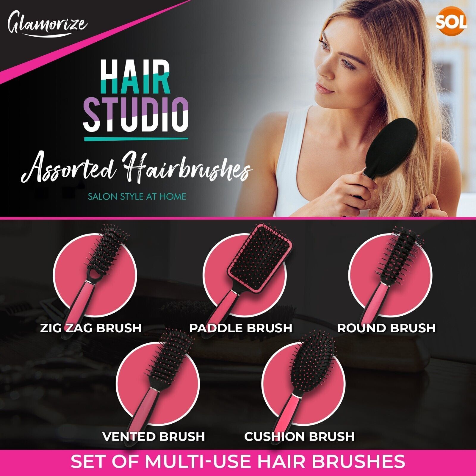 Complete Set for Infinite Styles: Your hair is your pride and joy. Have a good hair day every day with our 5x5pk hair brush set for women! Our complete set includes: Five (5) Paddle Brush, Five (5) Cushion Brush, Five (5) Zig Zag Brush, Five (5) Round Brush and Five (5) Vented Brush.