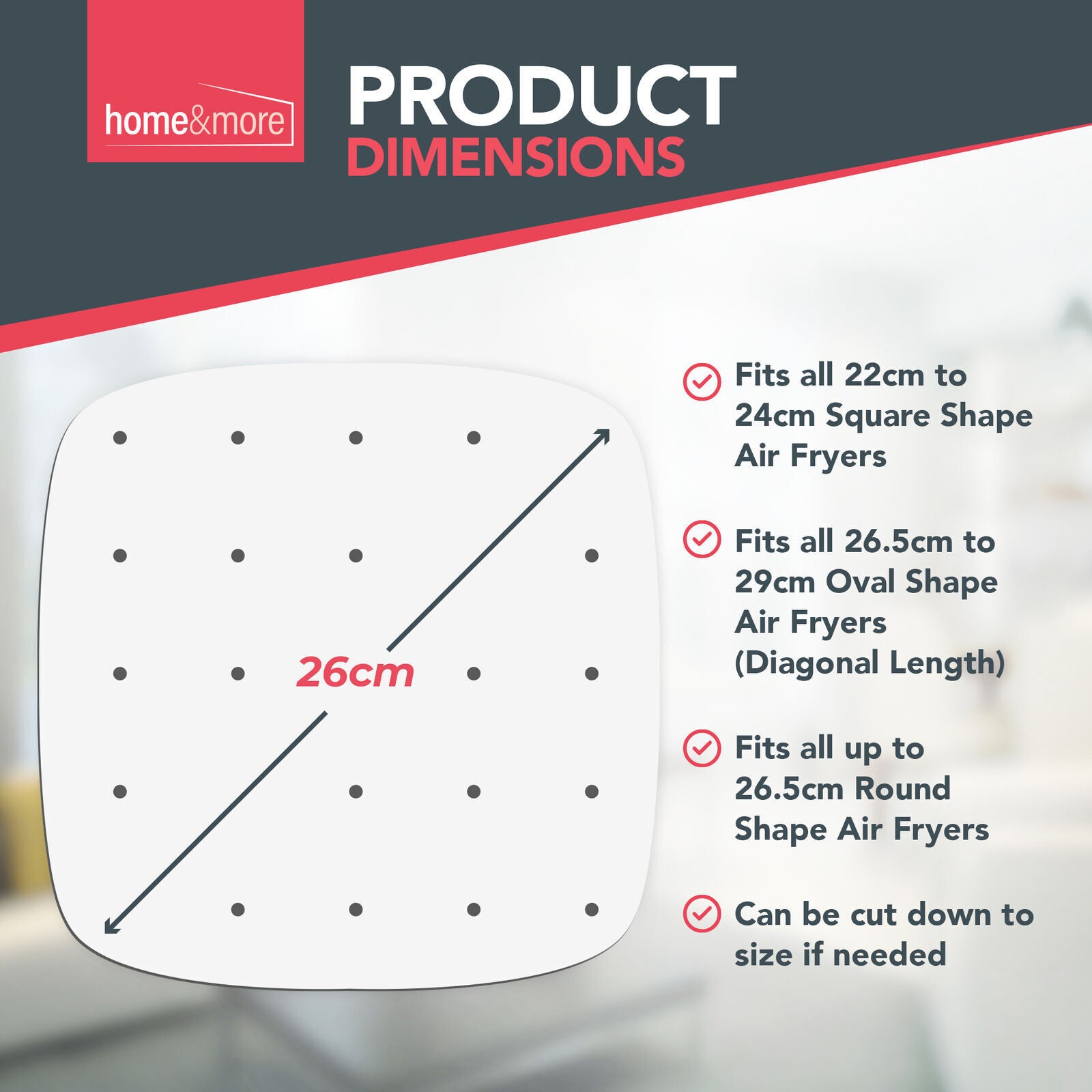 Perforated Air Fryer Liners Disposable Parchment Baking Paper 26cm Square | 100 Pack
