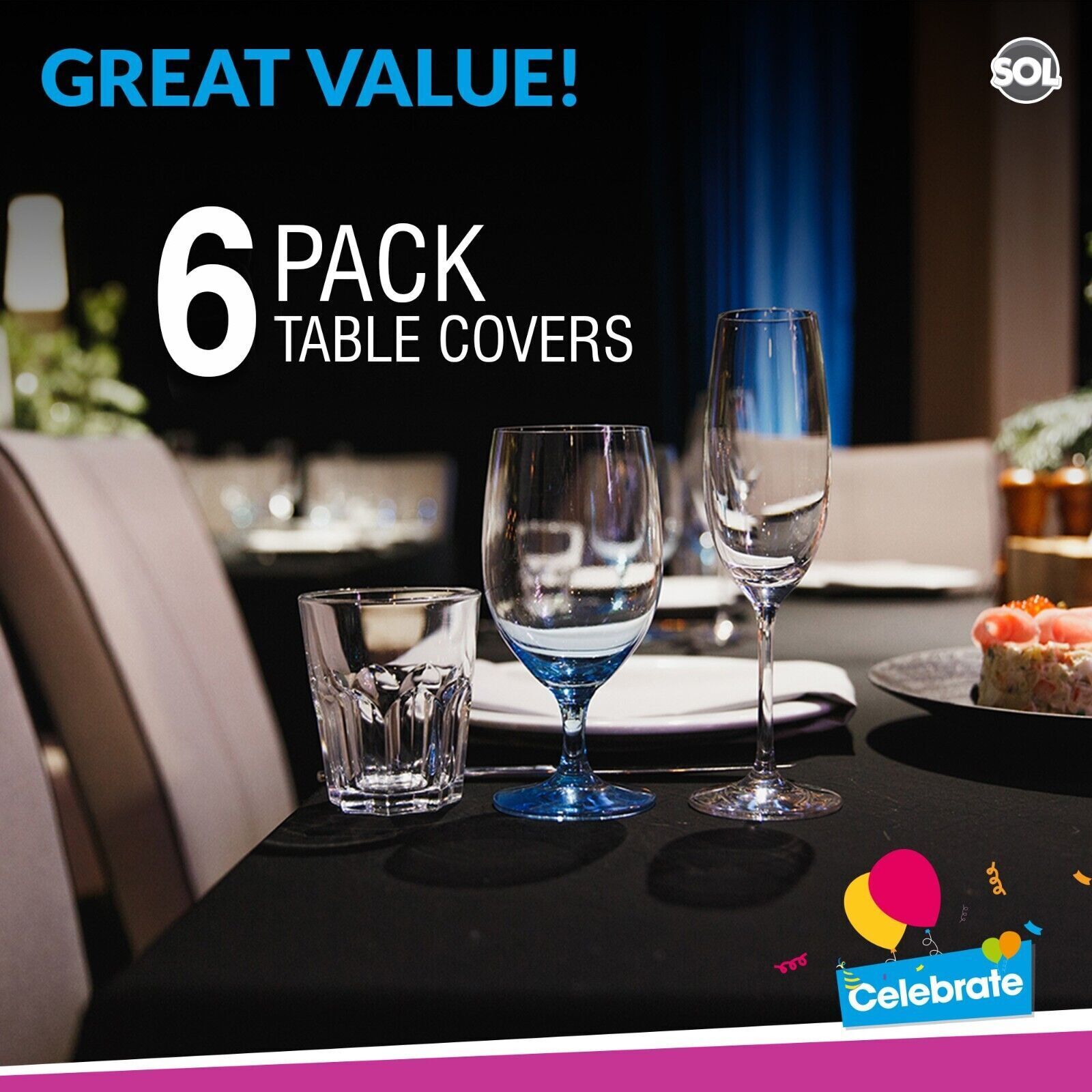 Black Plastic Table Covers | Disposable Wipe Clean | 6 Pack