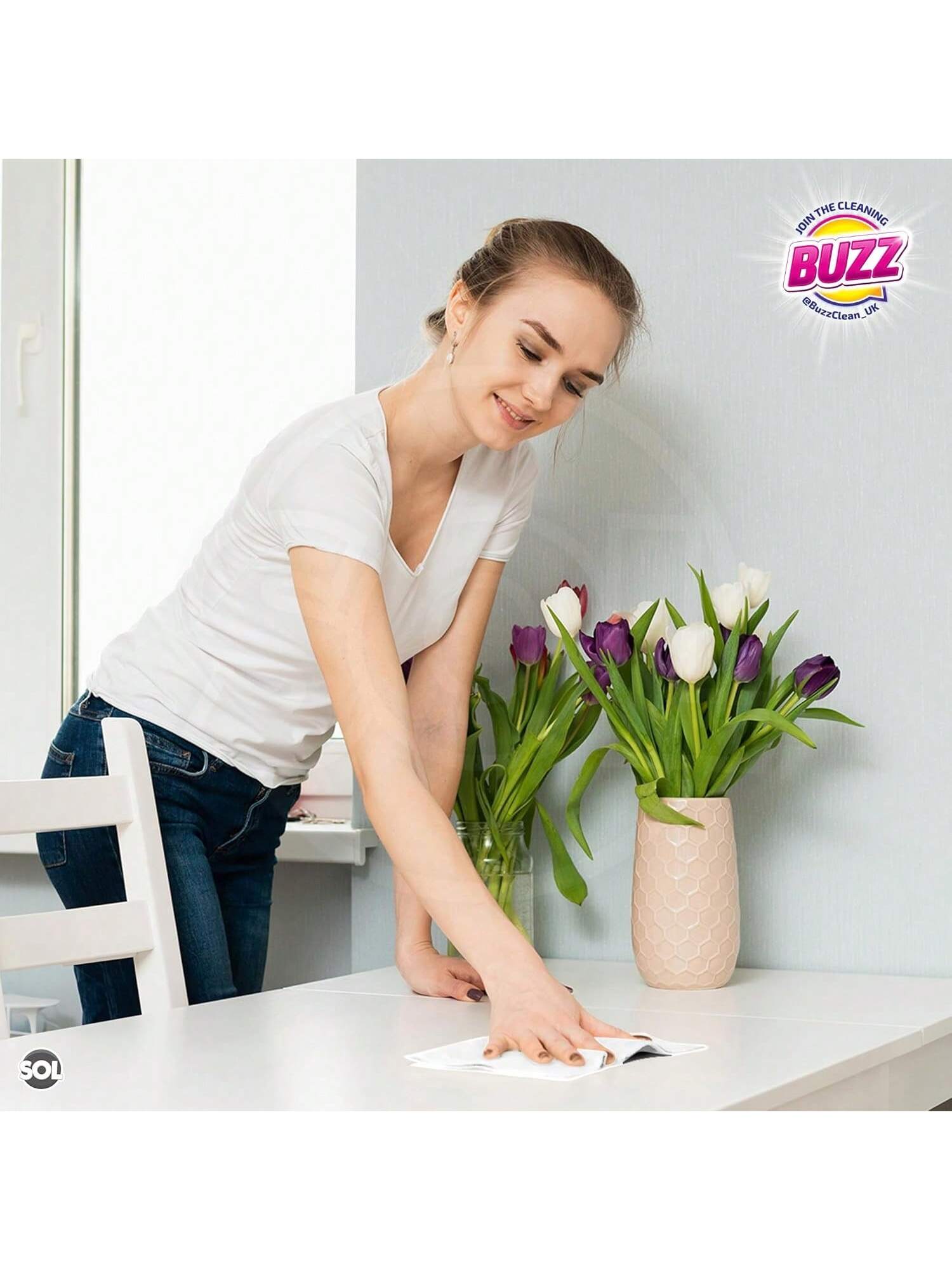 Buzz 220pk Anti-Bac Multisurface Wipes, 18cm X 19cm Rhubarb Scented Cleaning Wipes For Kitchen, Home & Office Surfaces, Multi-Purpose Surface Cleaner, Streak-Free, Quick-Drying, Remove Grease & Dirt