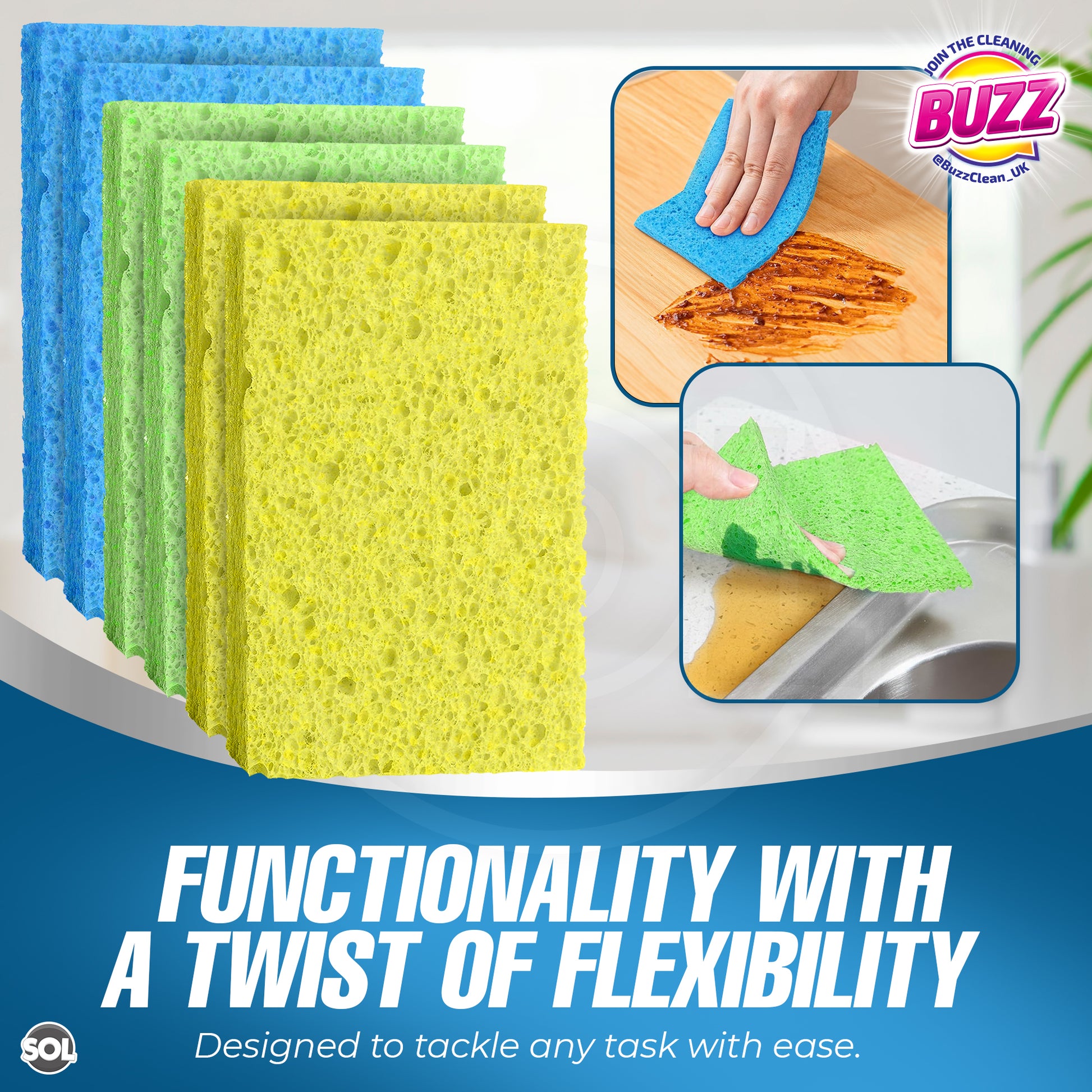 Soft & Flexible: These cellulose reusable washing up sponges are soft and flexible, ensuring they are gentle on surfaces and easy to use in tight spaces or on irregular shape. The sponges fit comfortably in your hand, enhancing cleaning efficiency