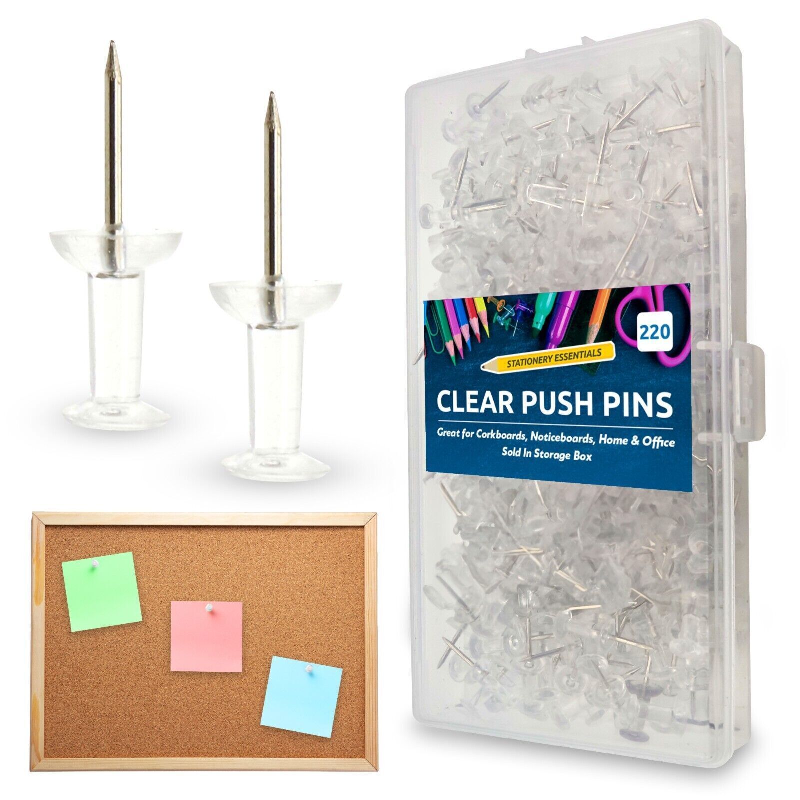Clear Push Pins for Corkboard 220 Pack – Notice Thumb Tacks