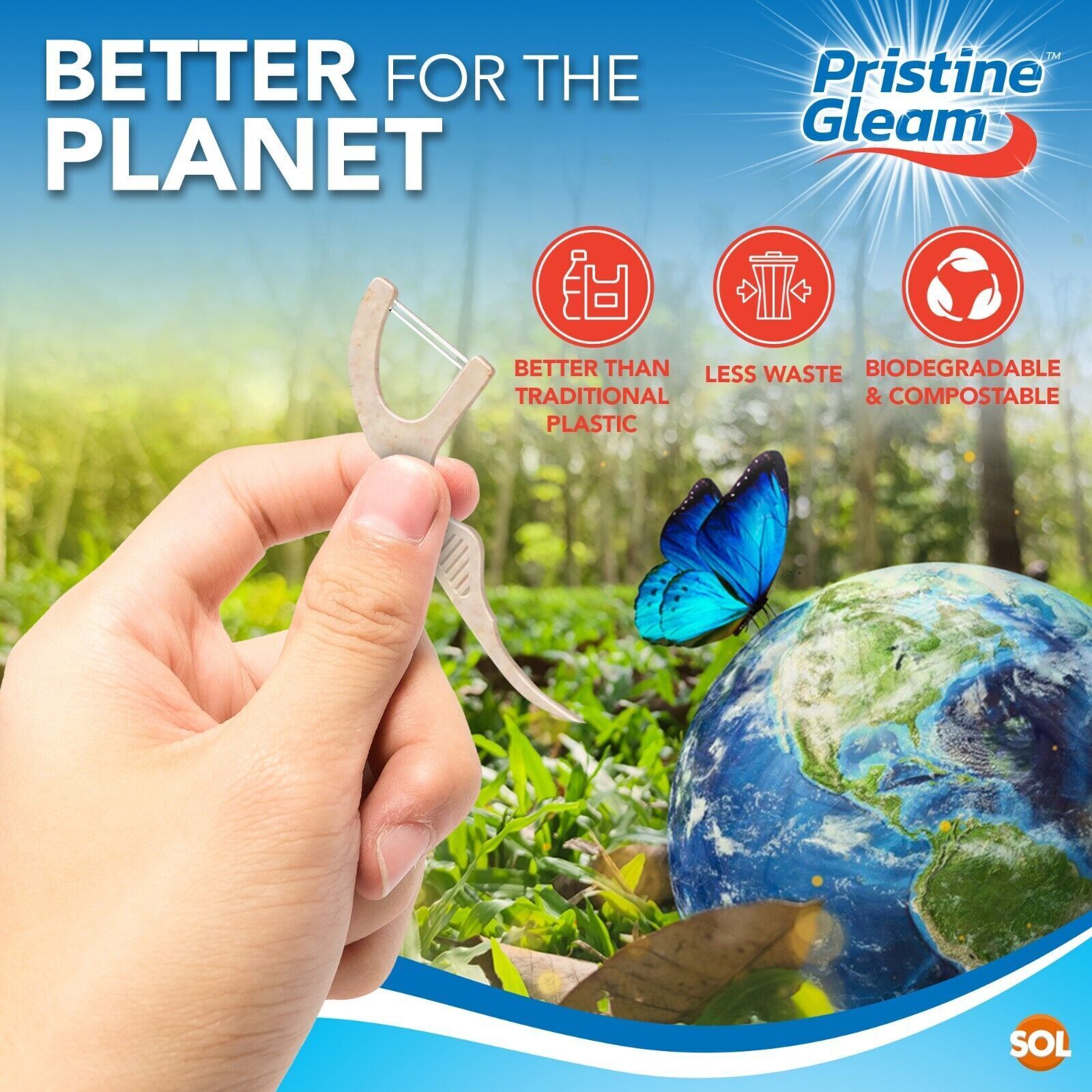 Happier Earth - Our corn starch floss sticks dental are biodegradable floss picks. Make a small change that will prevent yet more unnecessary plastic from polluting the earth and sea. Squeaky clean teeth guaranteed with our dental harps teeth flosser.