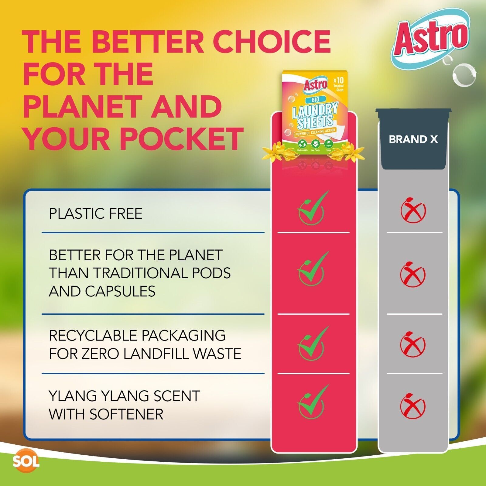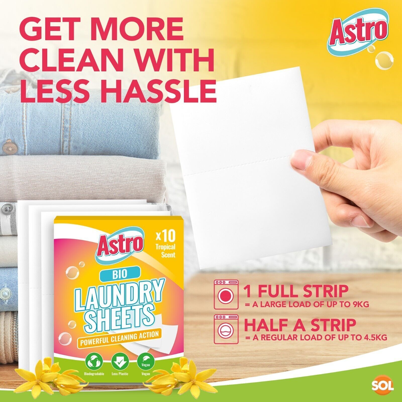 Biodegradable & Vegan: Our Astro Laundry Sheets are not just another eco laundry product. They are biodegradable and vegan, designed to minimize environmental impact while delivering superior cleaning power to washing detergent sheets.