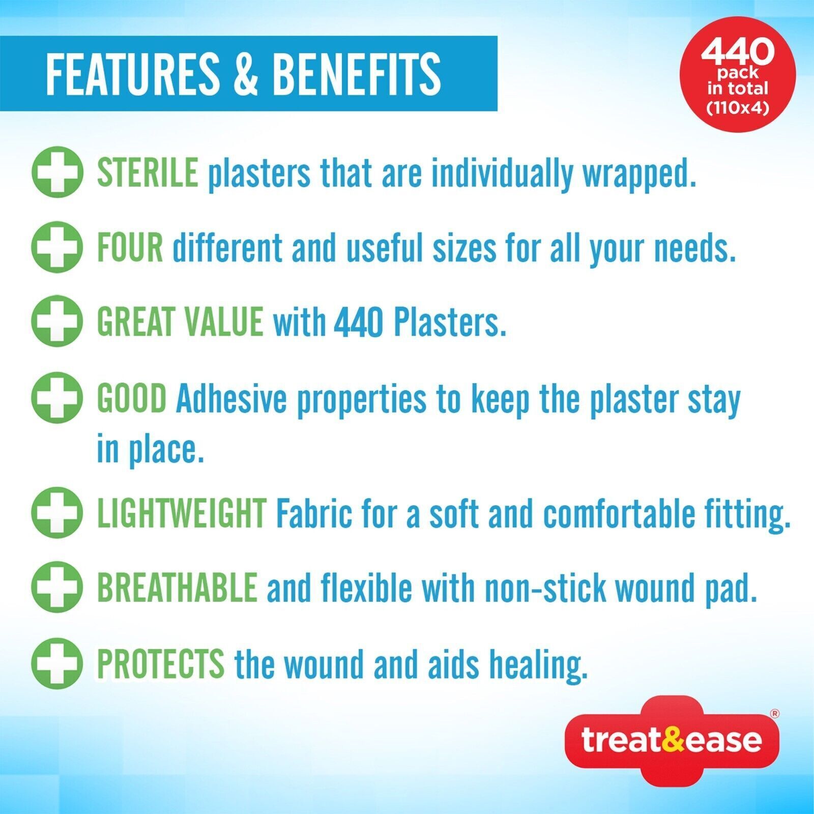 Assorted Fabric Plasters | Flexible Breathable | 440 Pack