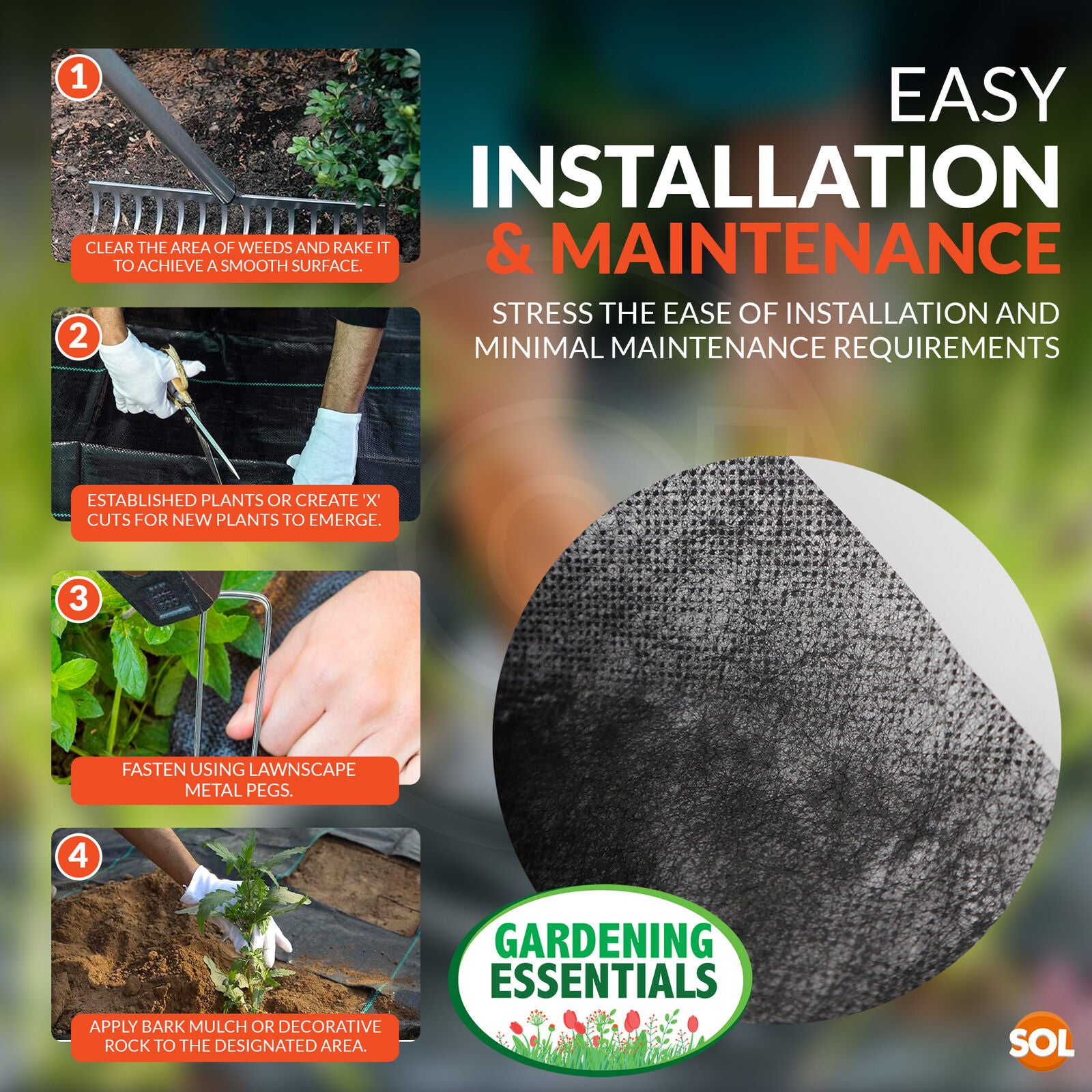 Easy Installation: Simply roll out over prepared soil, secure edges with included landscaping staples, and enjoy hassle-free weed control.