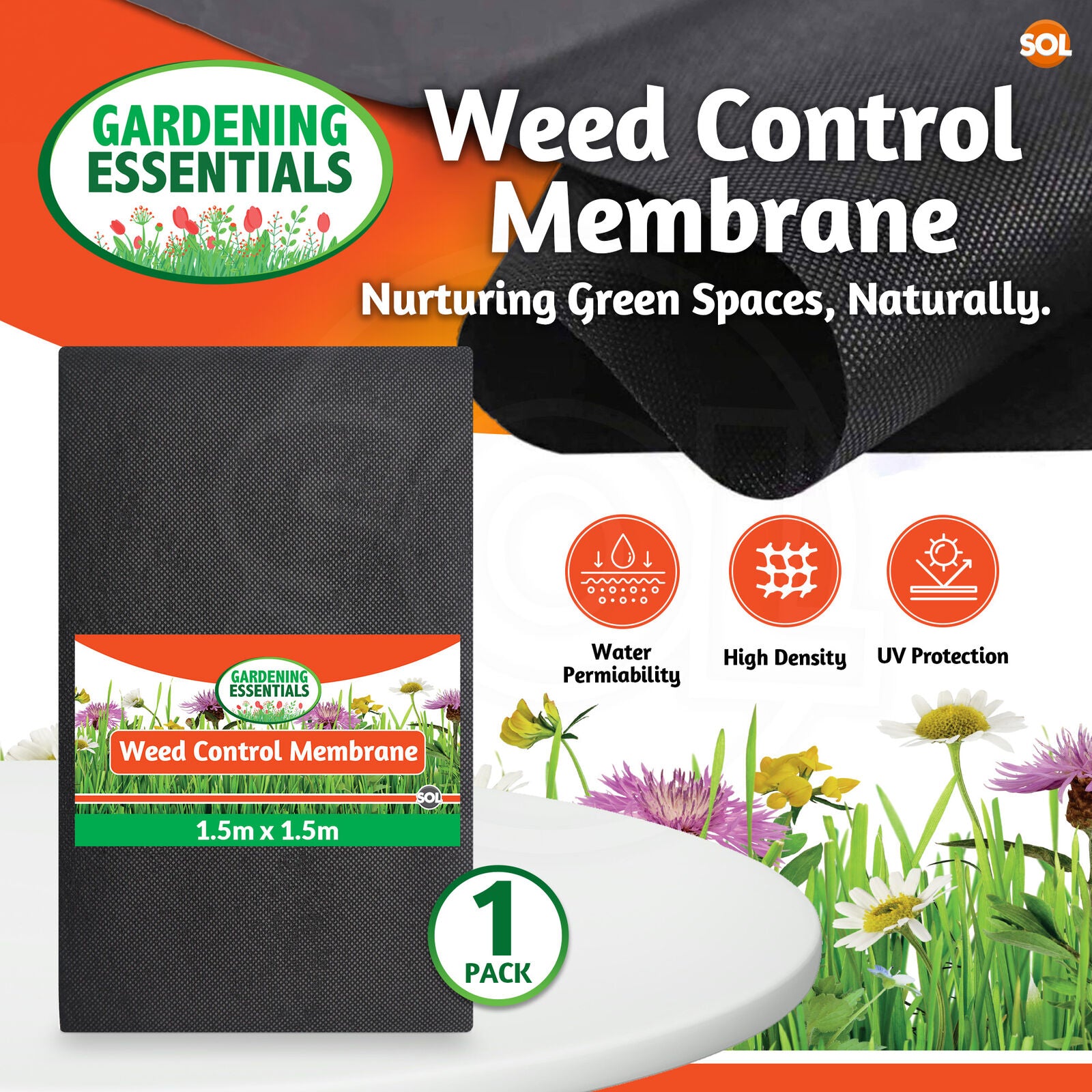 Heavy Duty Weed Control Fabric Membrane | 1.5M x 1.5M Ground Cover