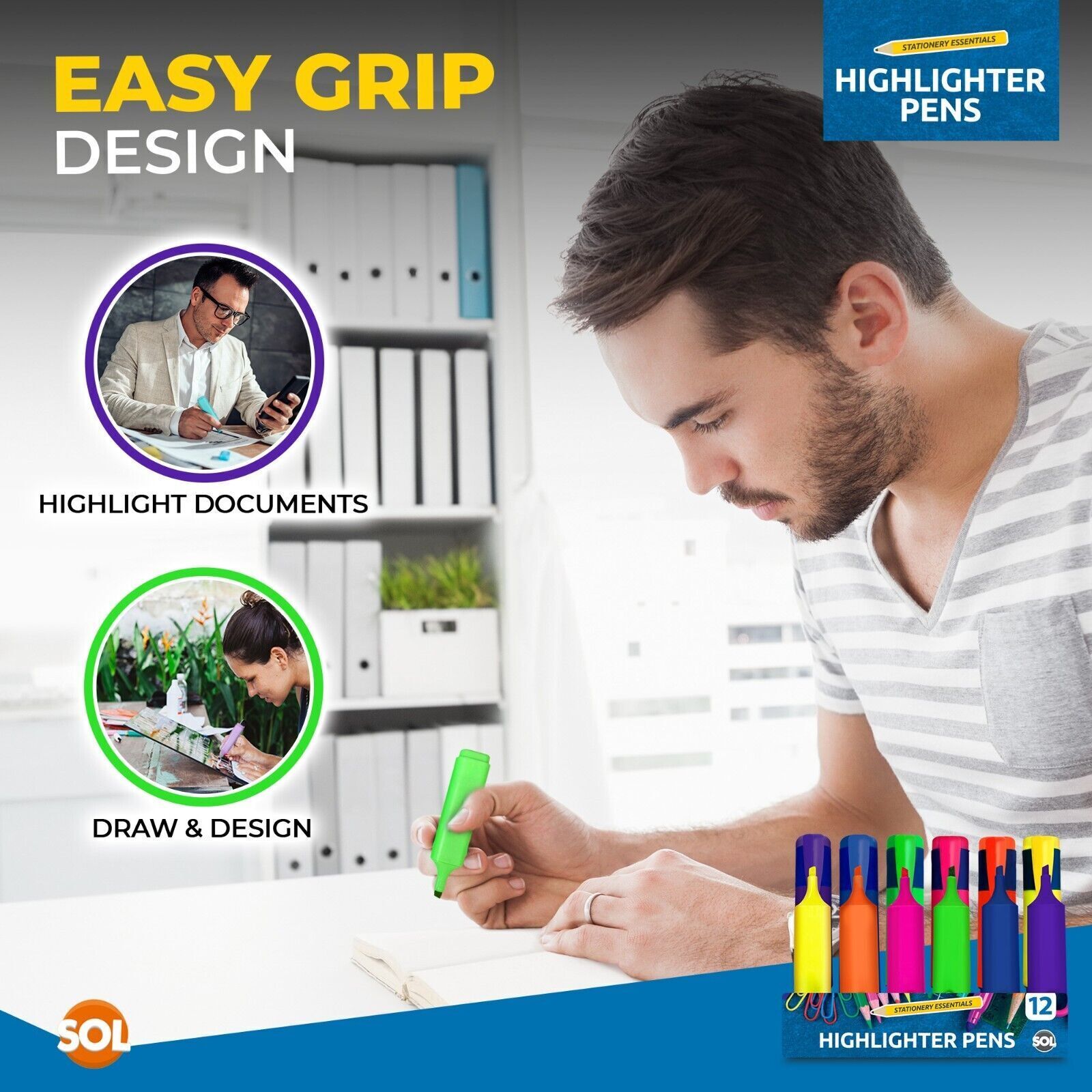 EASY GRIP DESIGN: We have designed these highlighters pens so that they are easy to grip and comfortable to hold and use. Each highlighter has a pocket clip on the cap for ease of use and storage. Clip to a pocket or a book.