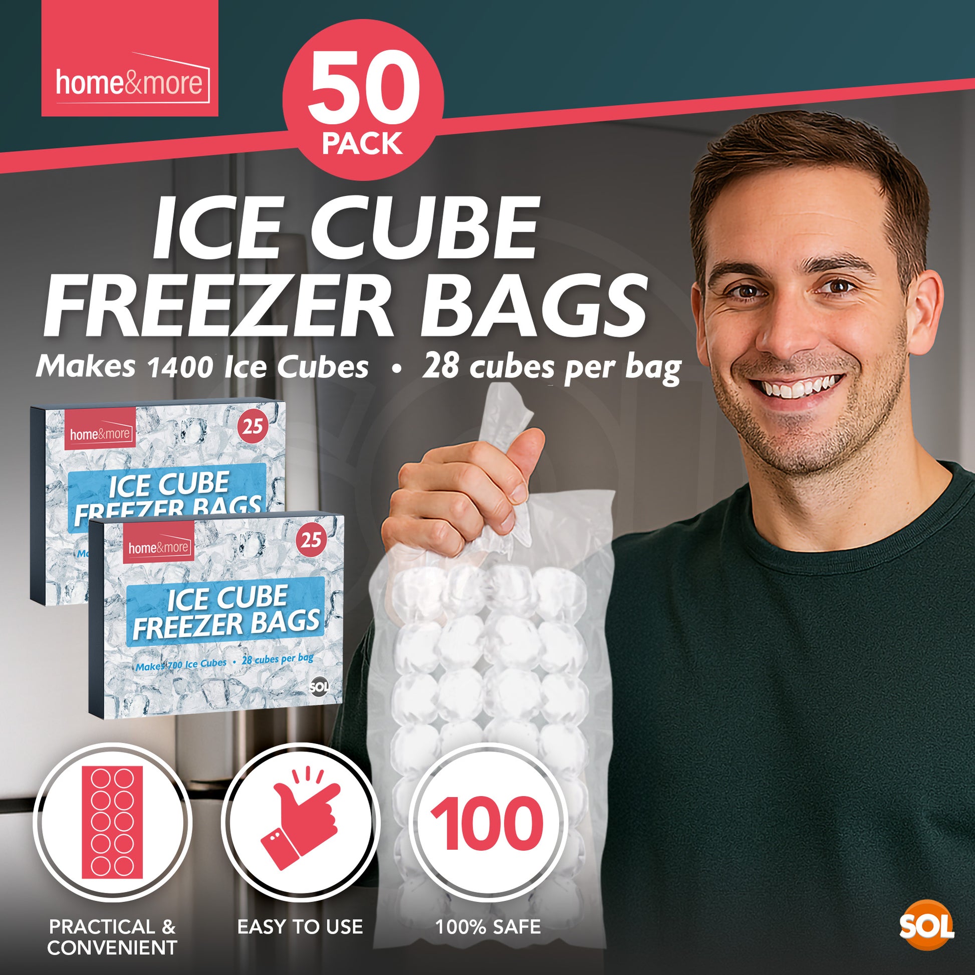 ABSOLUTELY SAFE: Compliant with all UK regulations, our plastic ice bags for ice cubes are safe and odour-free. Each bag makes Twenty Eight (28) ice cubes , with the entire set able to produce 1,400 ice cubes in total. This makes it an ideal option when cooling whiskey, tequila or other mixed drinks at home or for commercial use.