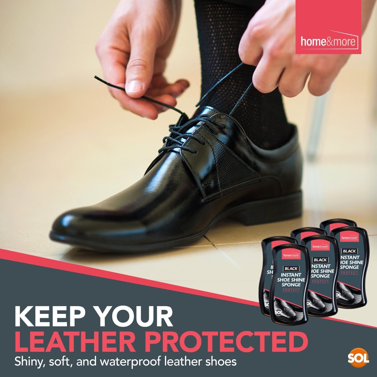 Keep Your Leather Protected: This instant shoe shine, not only will it gives your shoe a shine, it will also keep the leather protected, soft & waterproof.