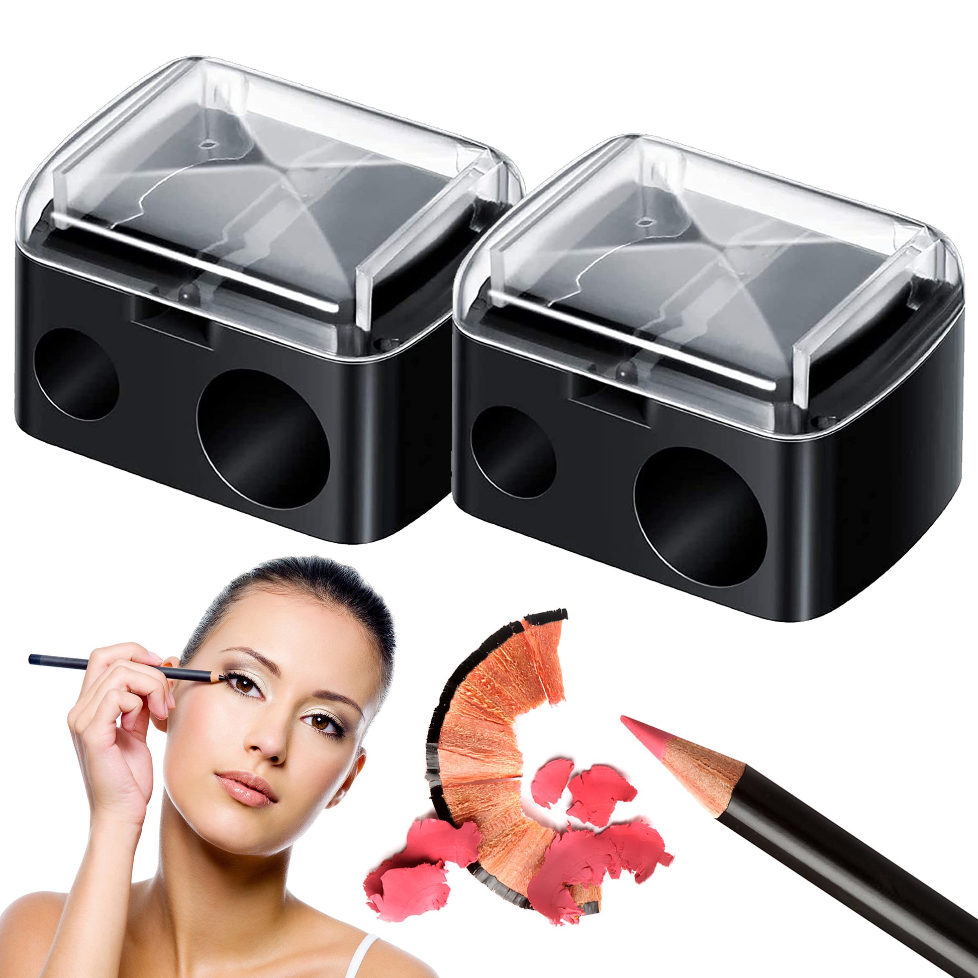Fits Both Standard Slim And Larger Pencils: Our eye pencil sharpeners offer 2 different sharpening blades. This eyeliner pencil sharpener can take both small & big pencil sharpeners makeup. Keeps the shavings in with the transparent cover.