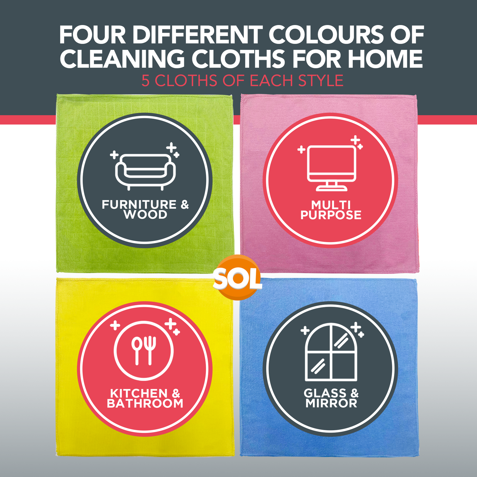 Microfibre Cleaning Cloths | Car Drying & Polishing Towel | 20 Pack