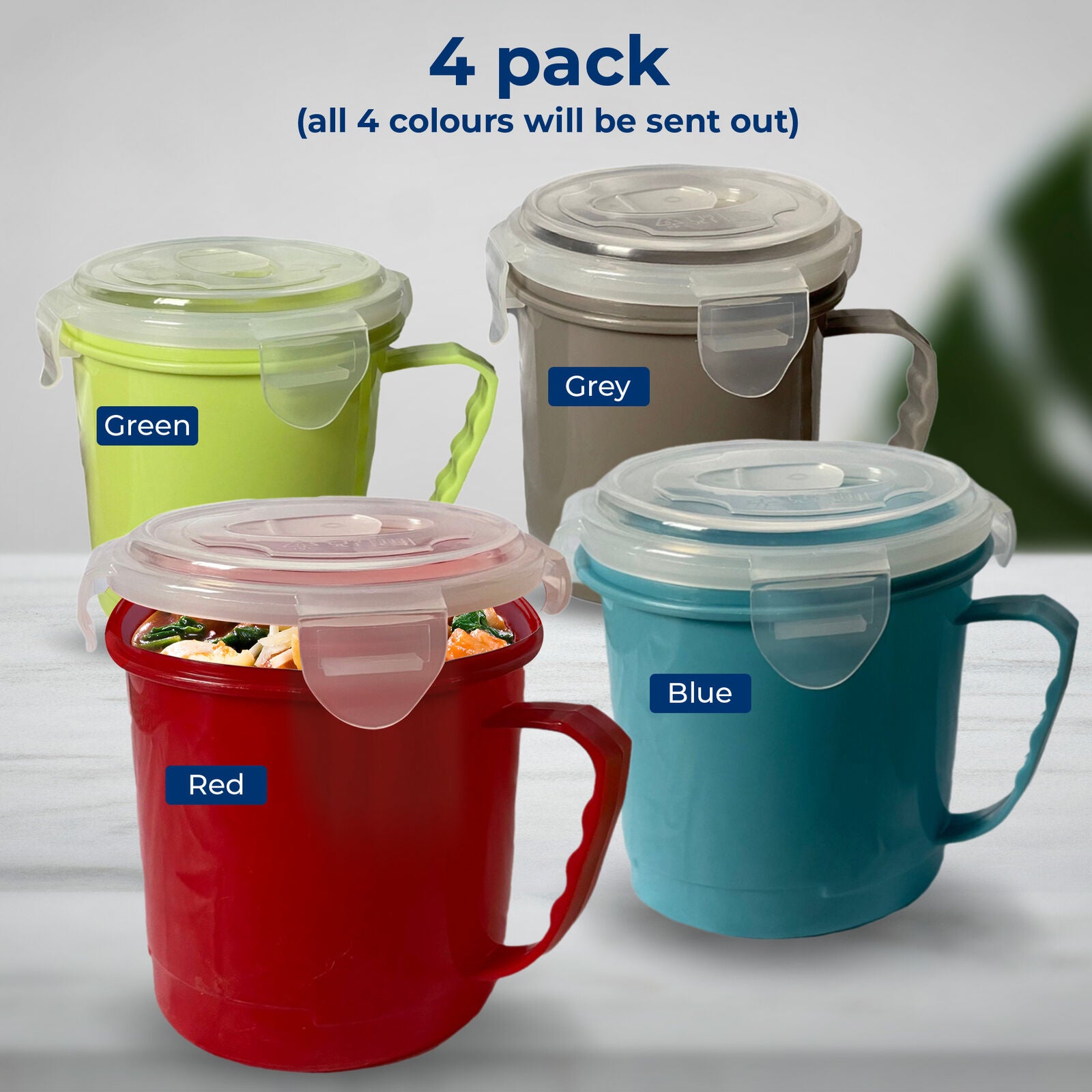 Microwave Soup Mug 700ml Airtight Clip Lock | 4 Pack