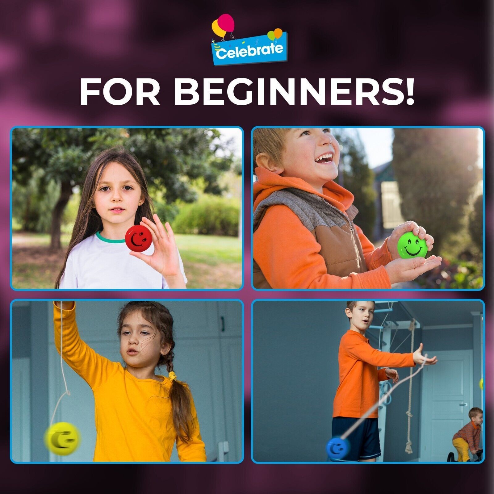 Smiles Everywhere: Each kids yo yo boasts a cheerful smiley print, turning every play session into a joy-filled experience. It's not just a spin; it's a smile! These yoyo for kids beginners or kids yoyo 3 year old are a sure birthday treats.