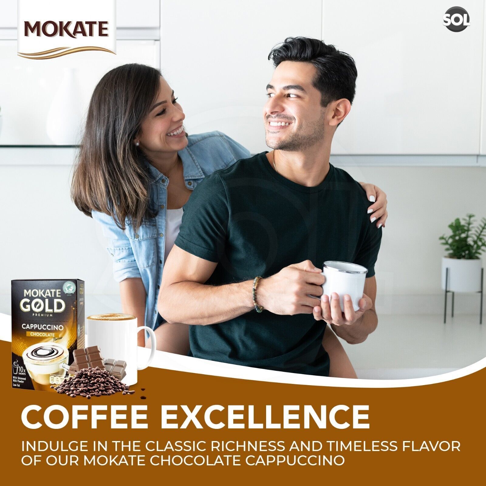 Elevate your coffee ritual: with the classic richness and inviting aroma of Mokate Cappuccino sachet coffee, a testament to our commitment to unparalleled quality and innovation.