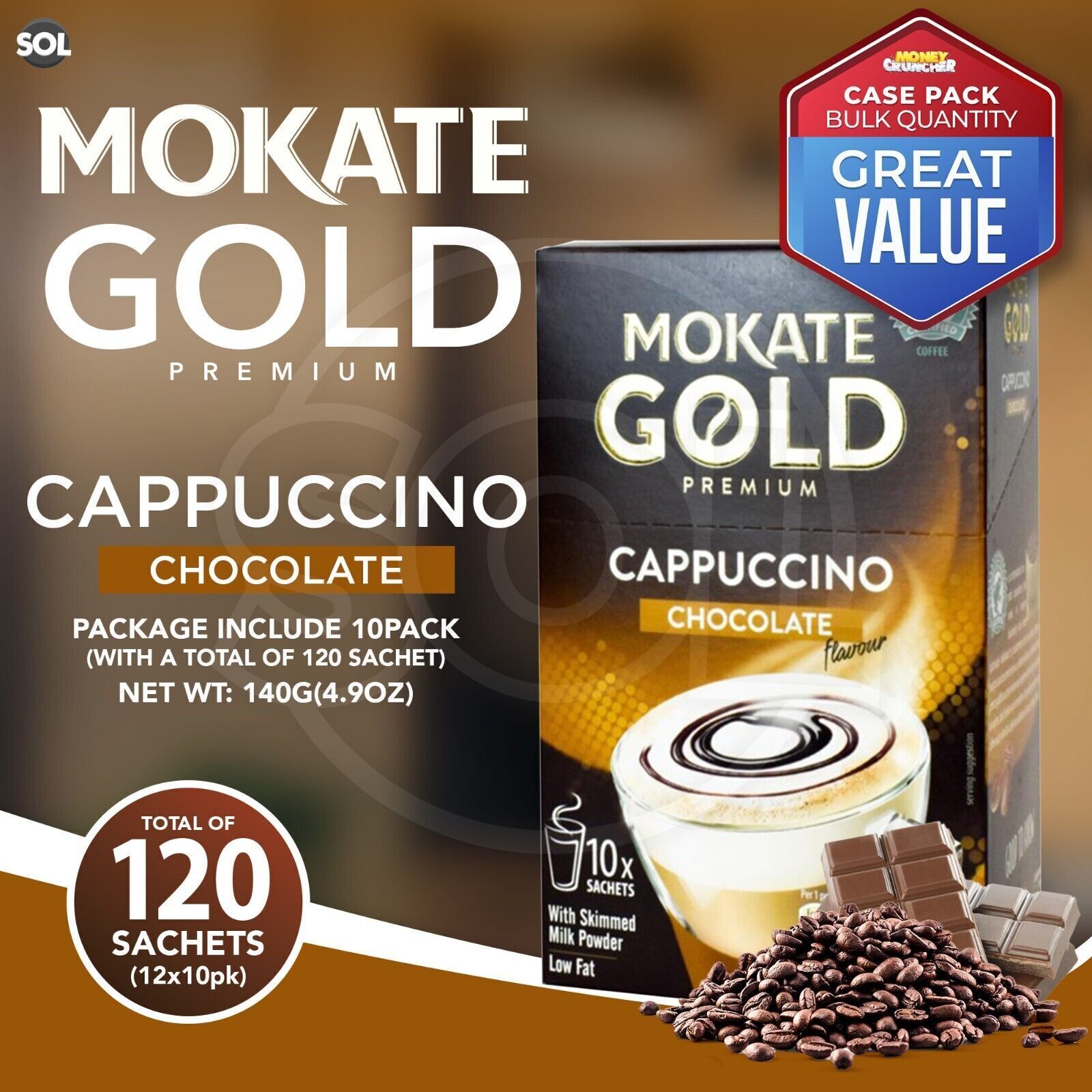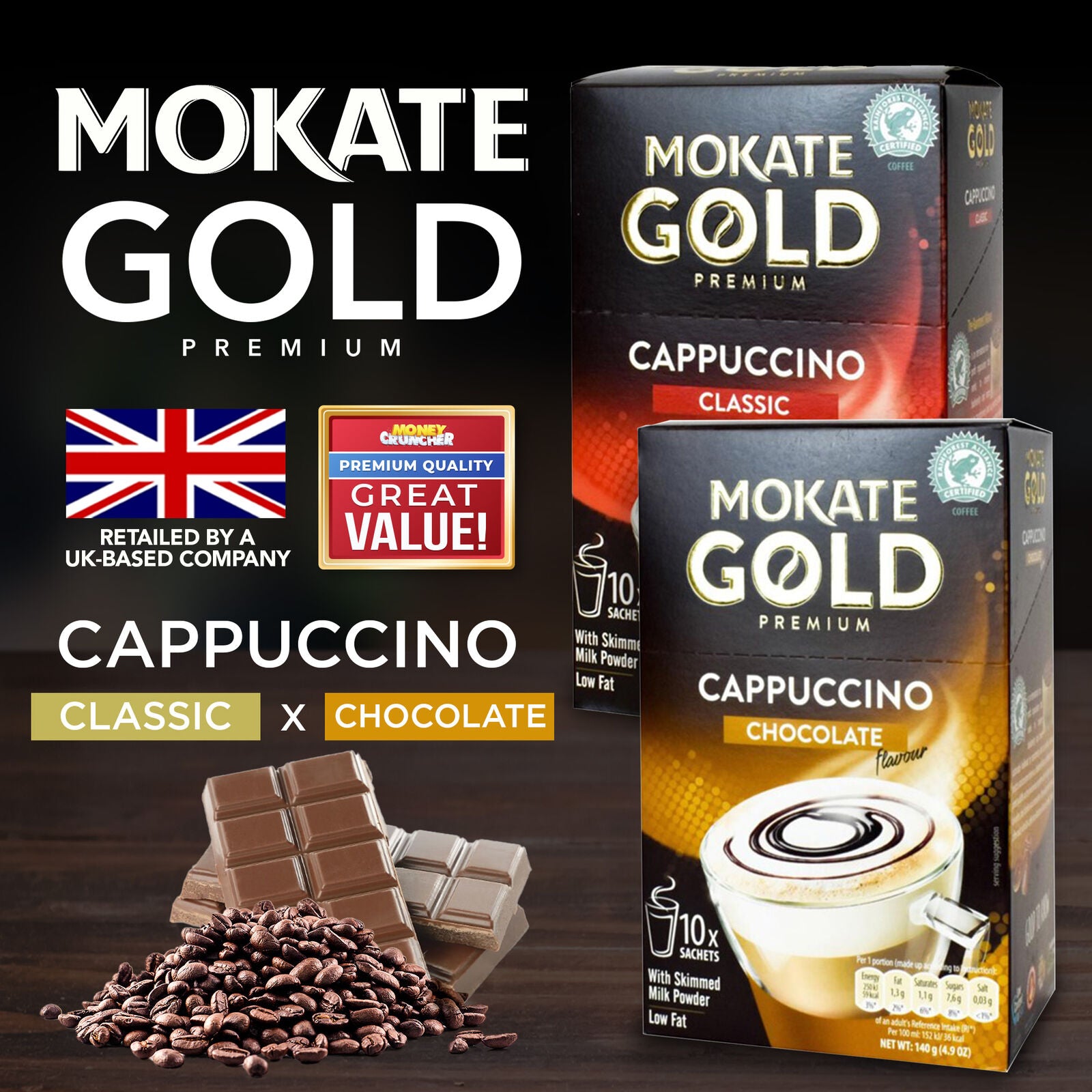 Mokate Gold Cappuccino Coffee Sachets | Classic & Chocolate Instant | 60 Pack