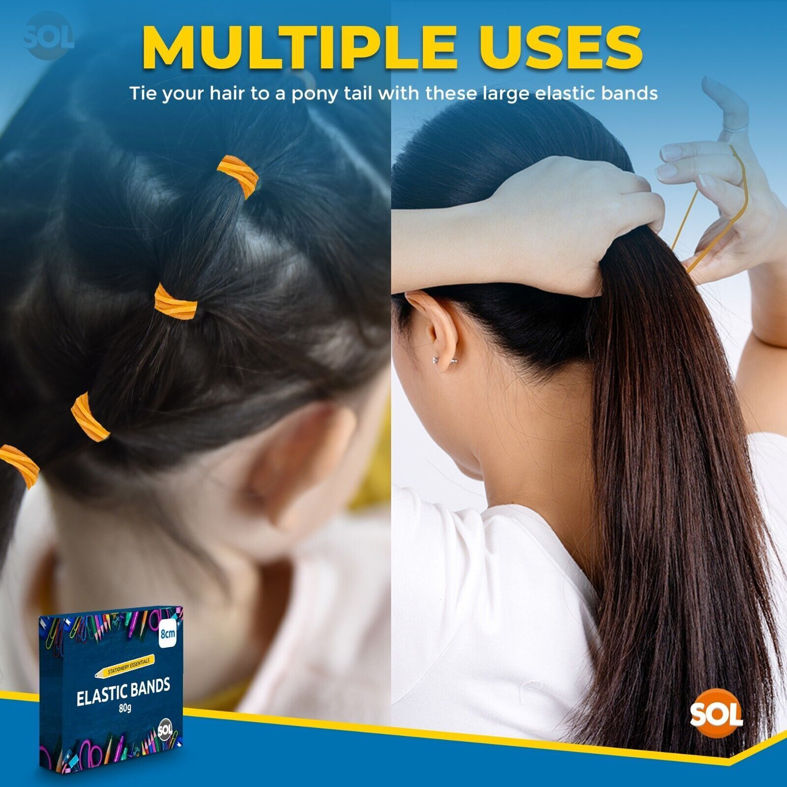 Great Value: With 80g of all purpose rubber bands, you have everything you need for all your binding and classifying office and school supplies, tying little pouches at home, organizing toys, or using them as hair elastics for girls.
