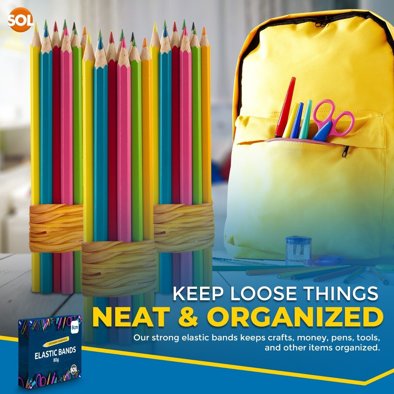 Keep Things Organised: Use the large elastic bands to classify office folders, packs, pouches, and paper files. You may also use these rubber bands to identify toy boxes, assignment papers, to organise children's art supplies, and other DIY materials.