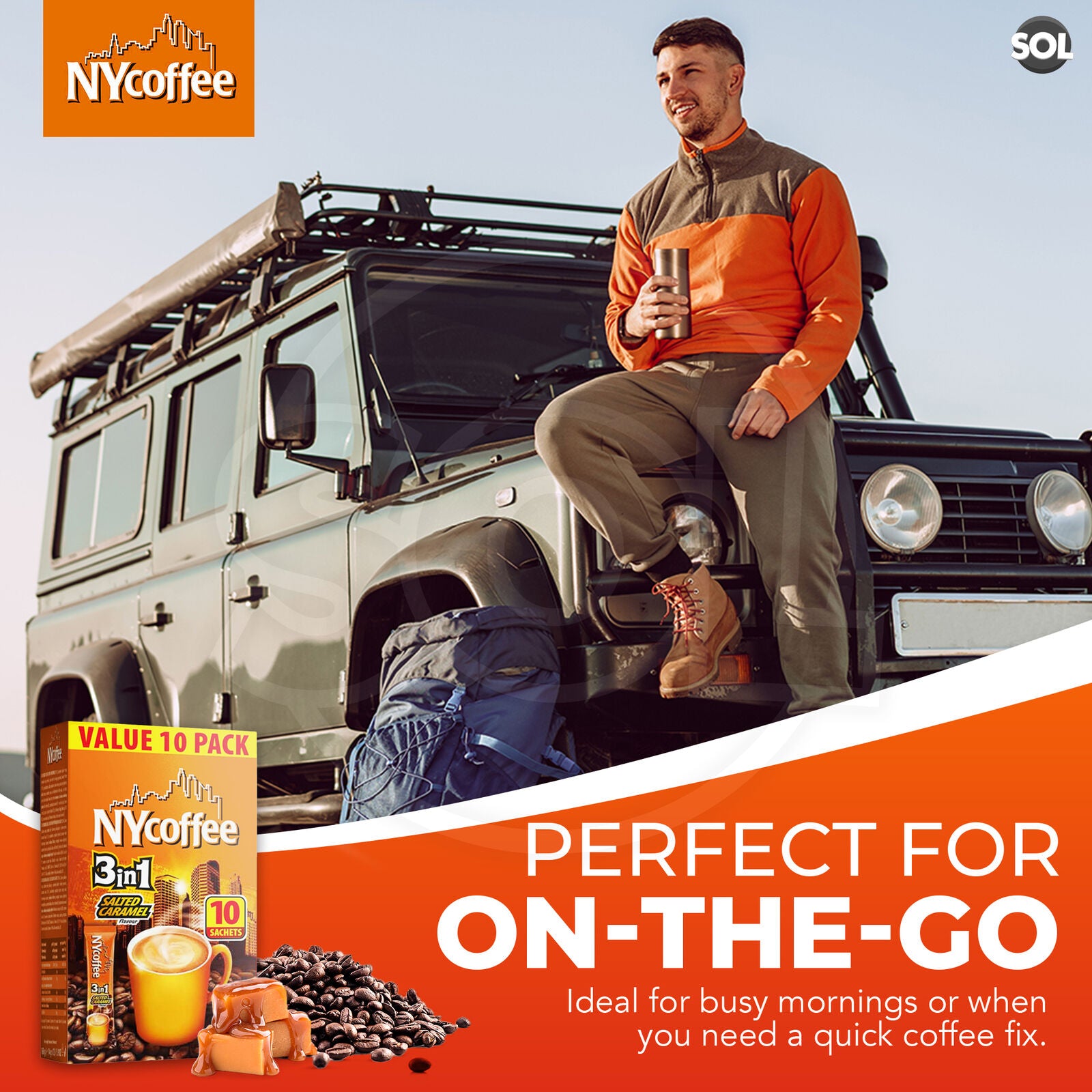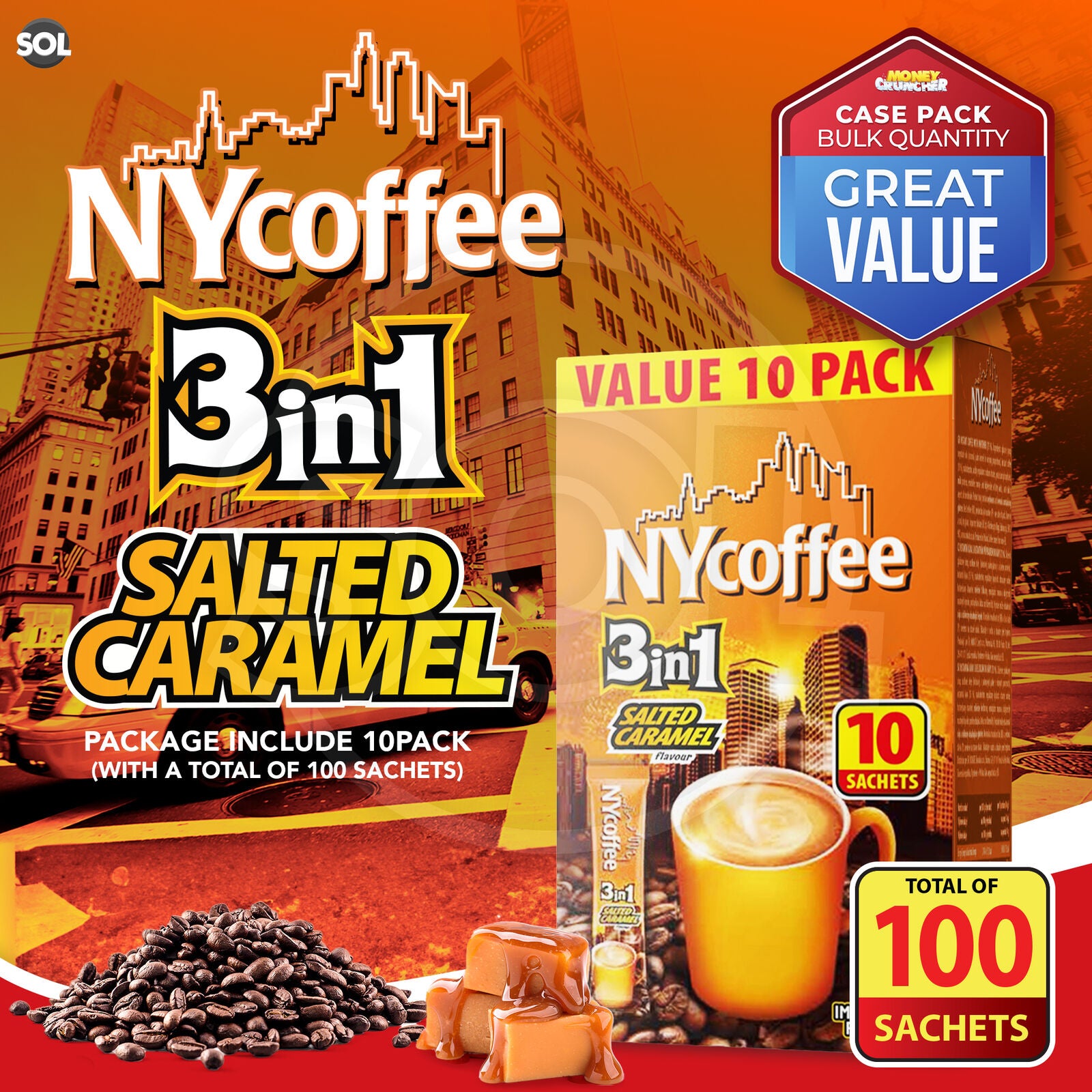 NY Coffee Instant Coffee Sachets 3 in 1 Salted Caramel | Bulk Pack 100