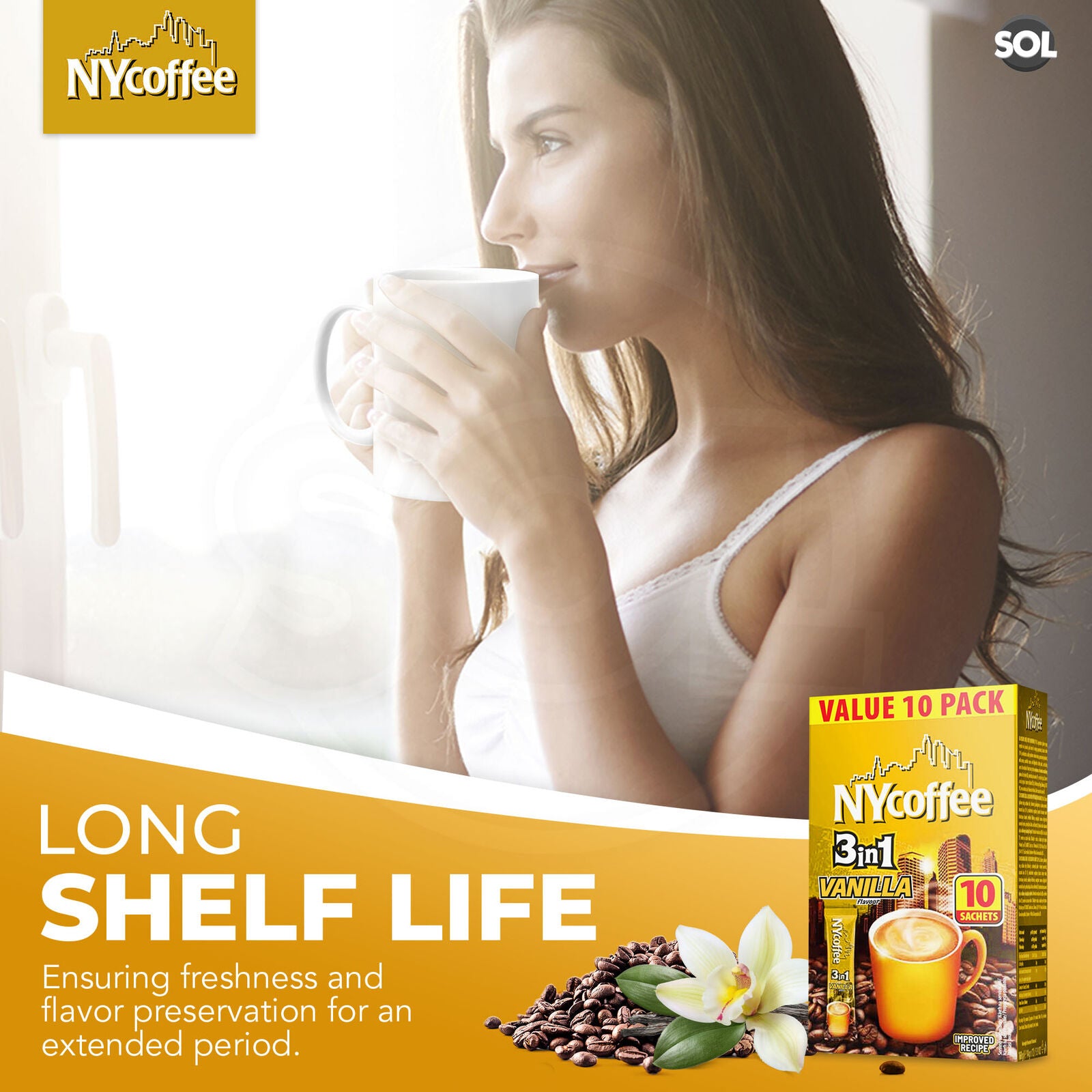 NY Coffee Instant Coffee Sachets 3 in 1 Vanilla | Bulk Pack 100