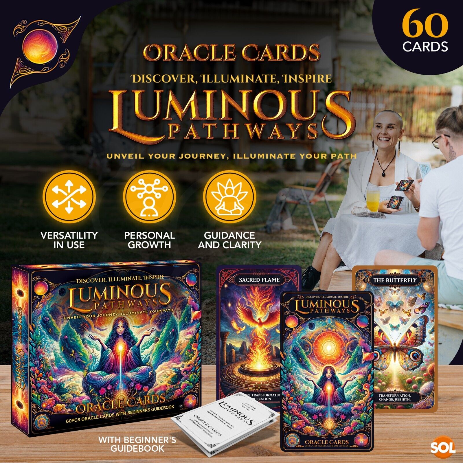 Versatile Applications -  Whether for daily inspiration, meditation, or deeper self-reflection, the versatile guidebook offers various spreads and techniques, maximizing the deck's potential and your personal growth.