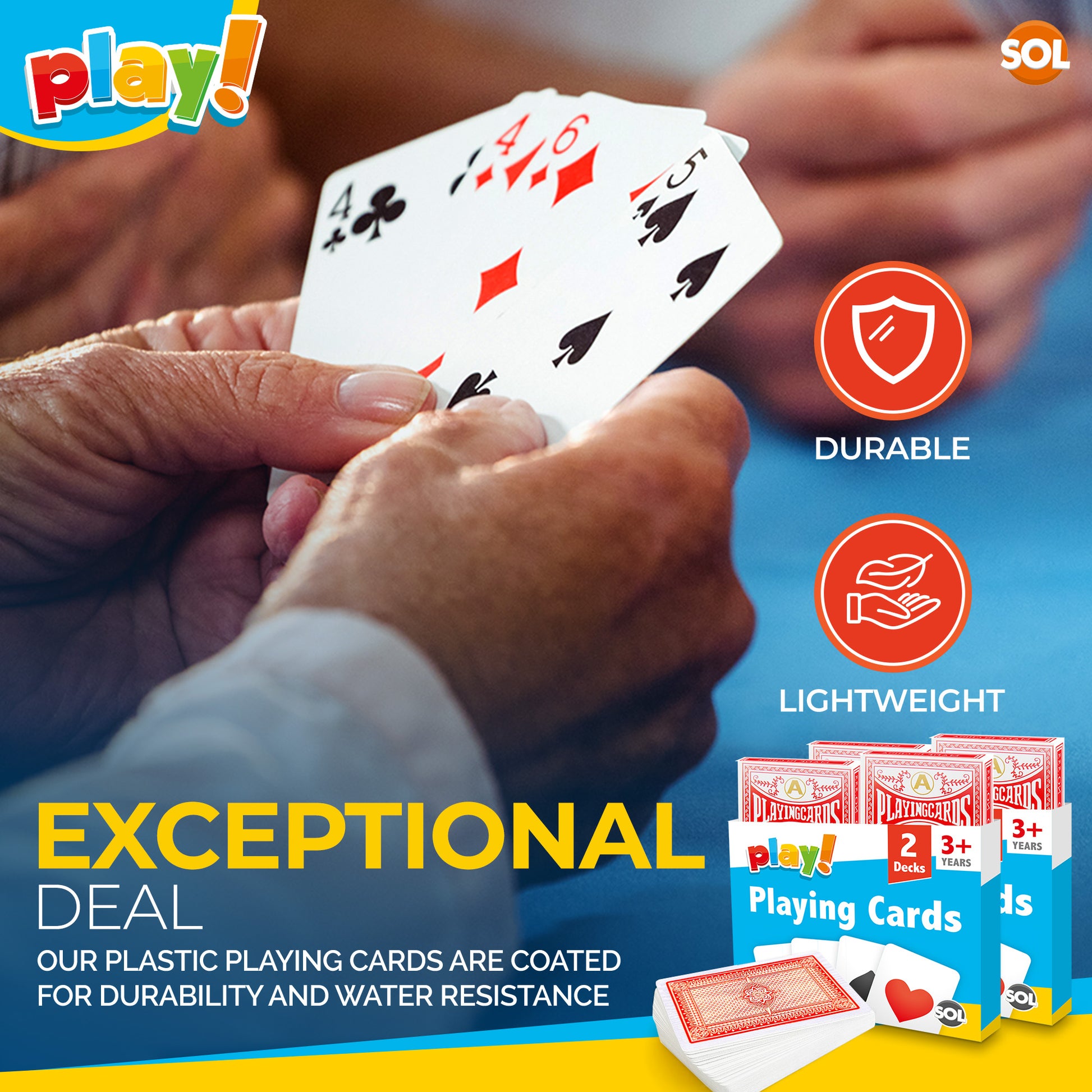 Durable and Lightweight Playing Cards: Long lasting and sturdy plastic-coated playing cards for a classic hand game. A classic games for everybody. It can be played with two or more people, or just for you to enjoy.