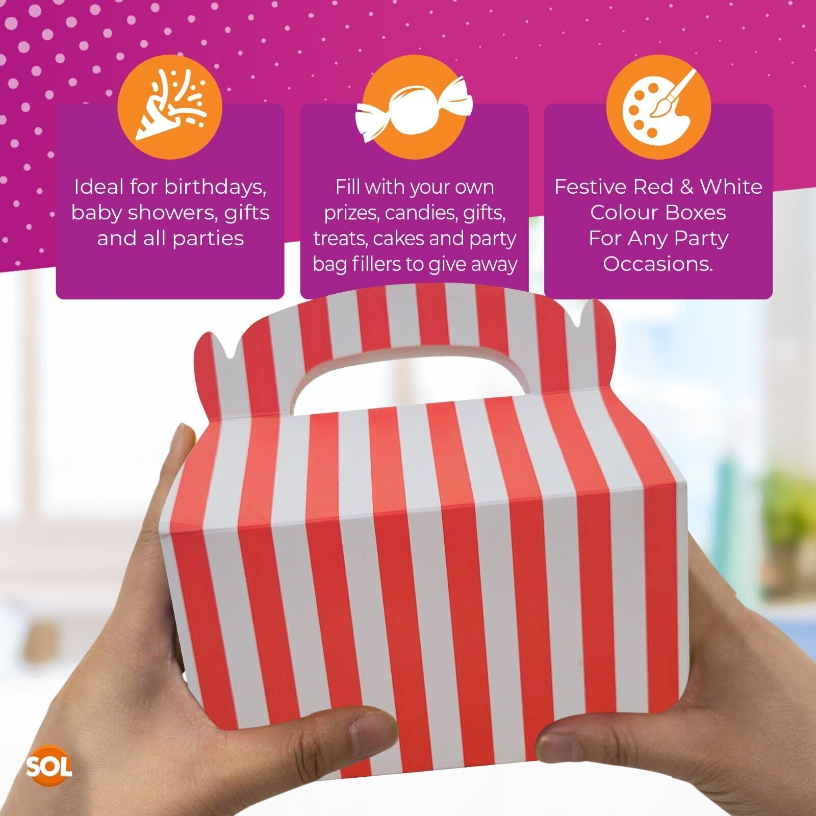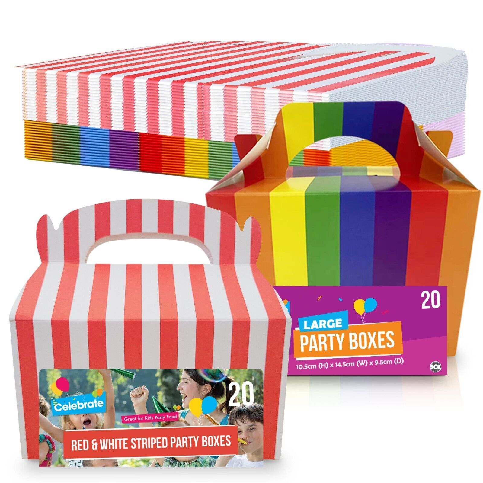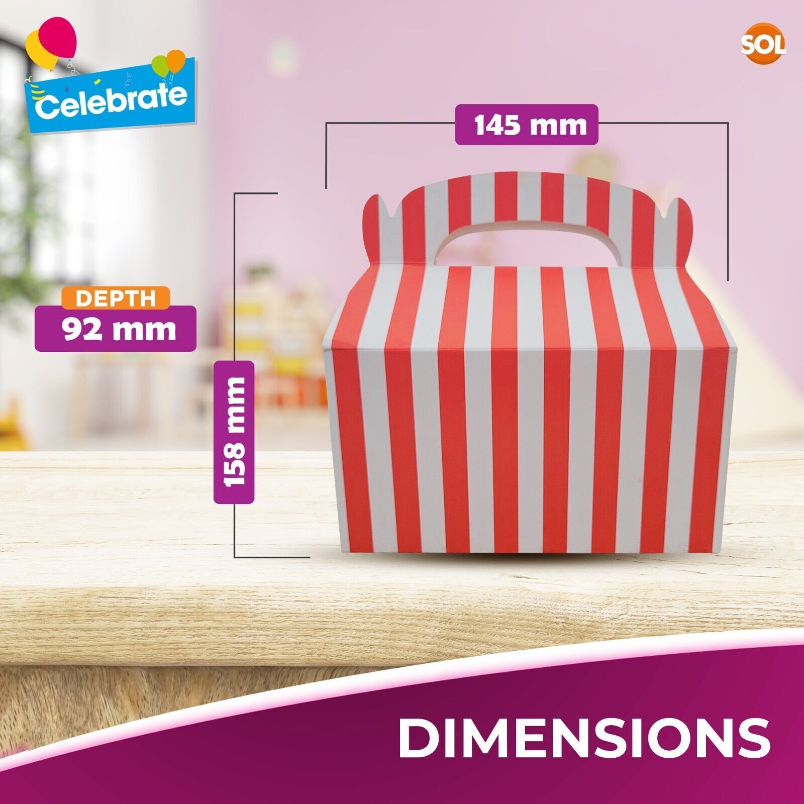 Amazing Value: We simply will not be beaten on value with our children party boxes. Our party food boxes for kids are sure to be loved by everybody with cute rainbow or red and white striped design. (Measure 14.5cm long x 10.5cm wide x 9.5cm depth)