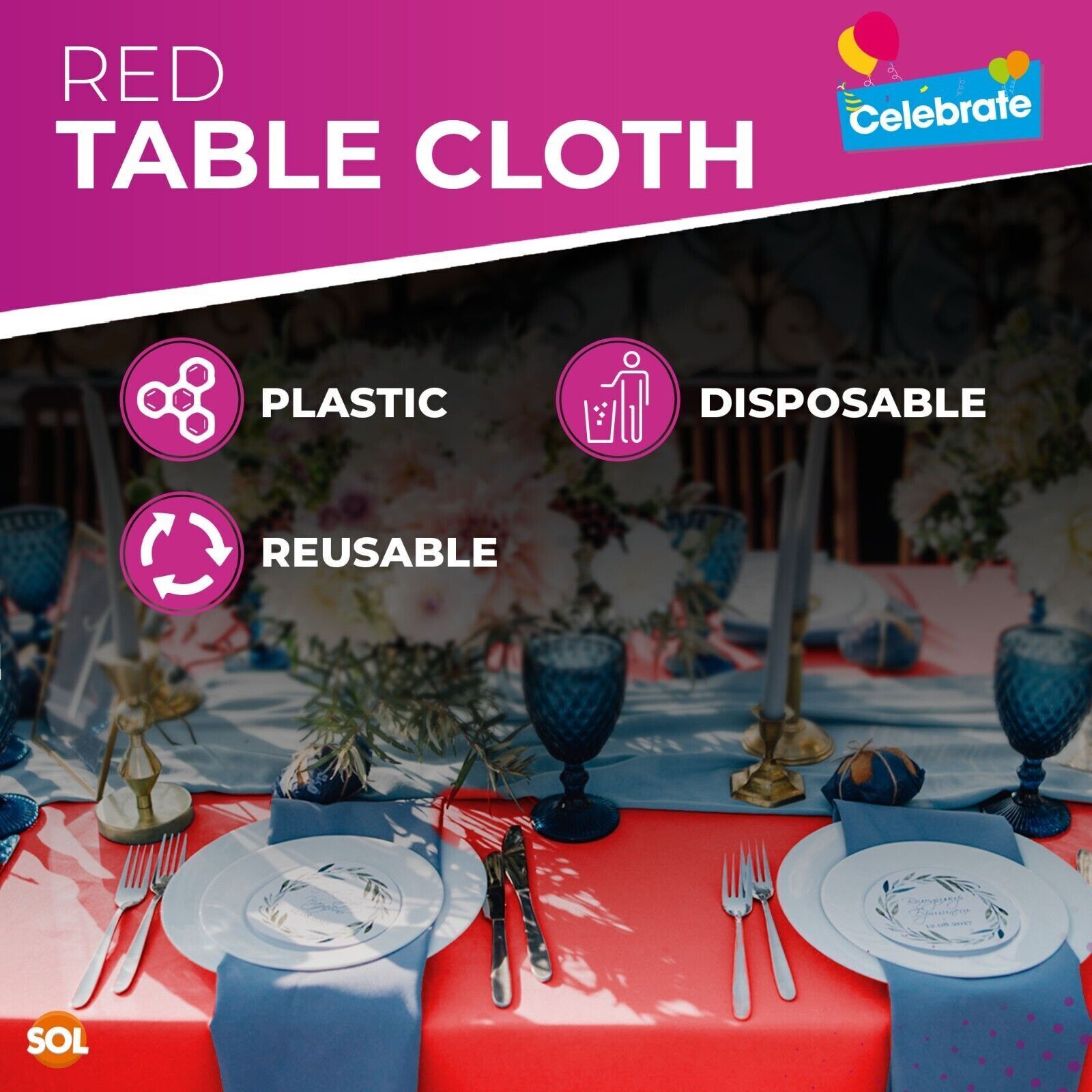 Convenient Cleanup: Say goodbye to post-party cleanup stress with our disposable red plastic tablecloth. Designed for easy tidying up, they make clearing tables a breeze, perfect for hassle-free party planning and cleanup.