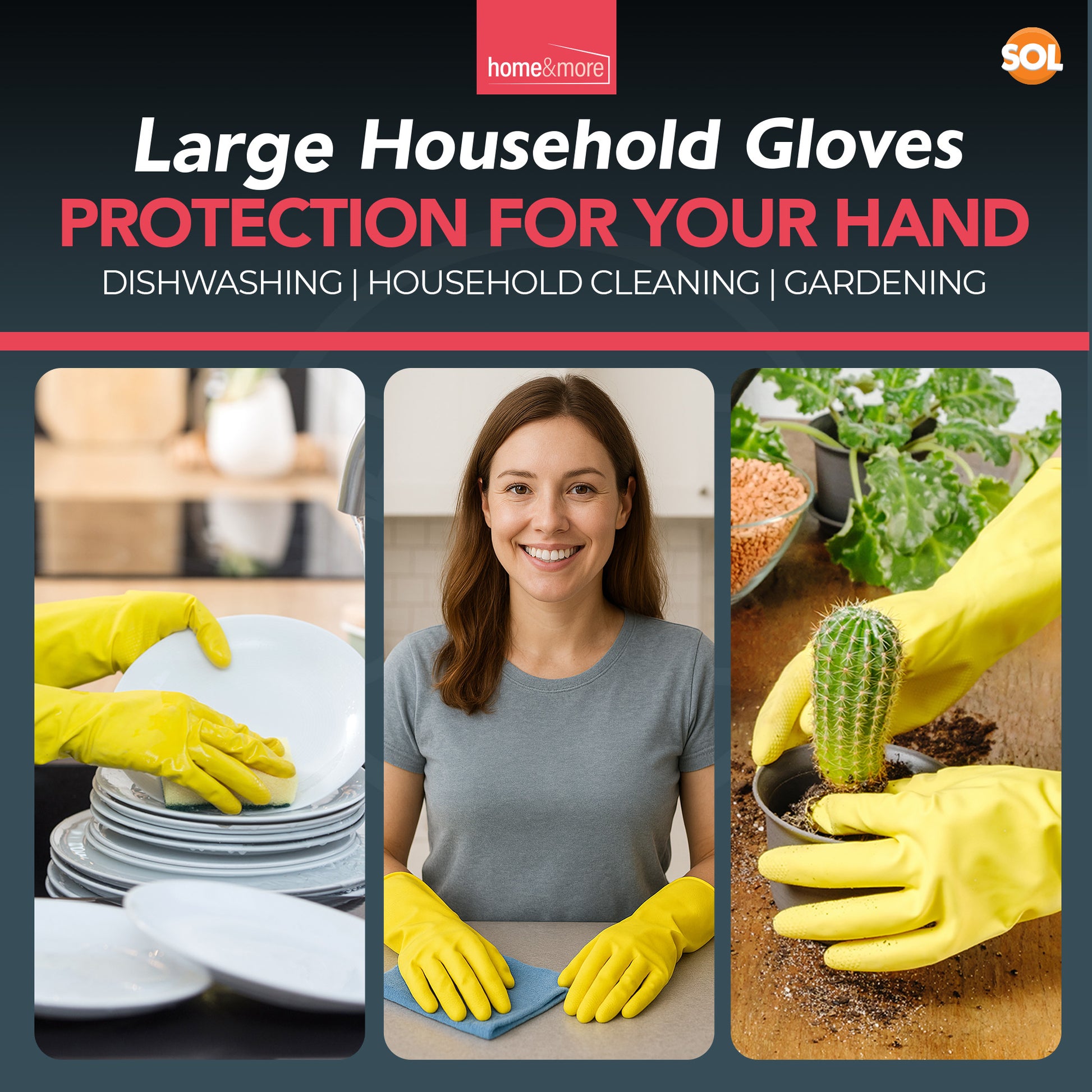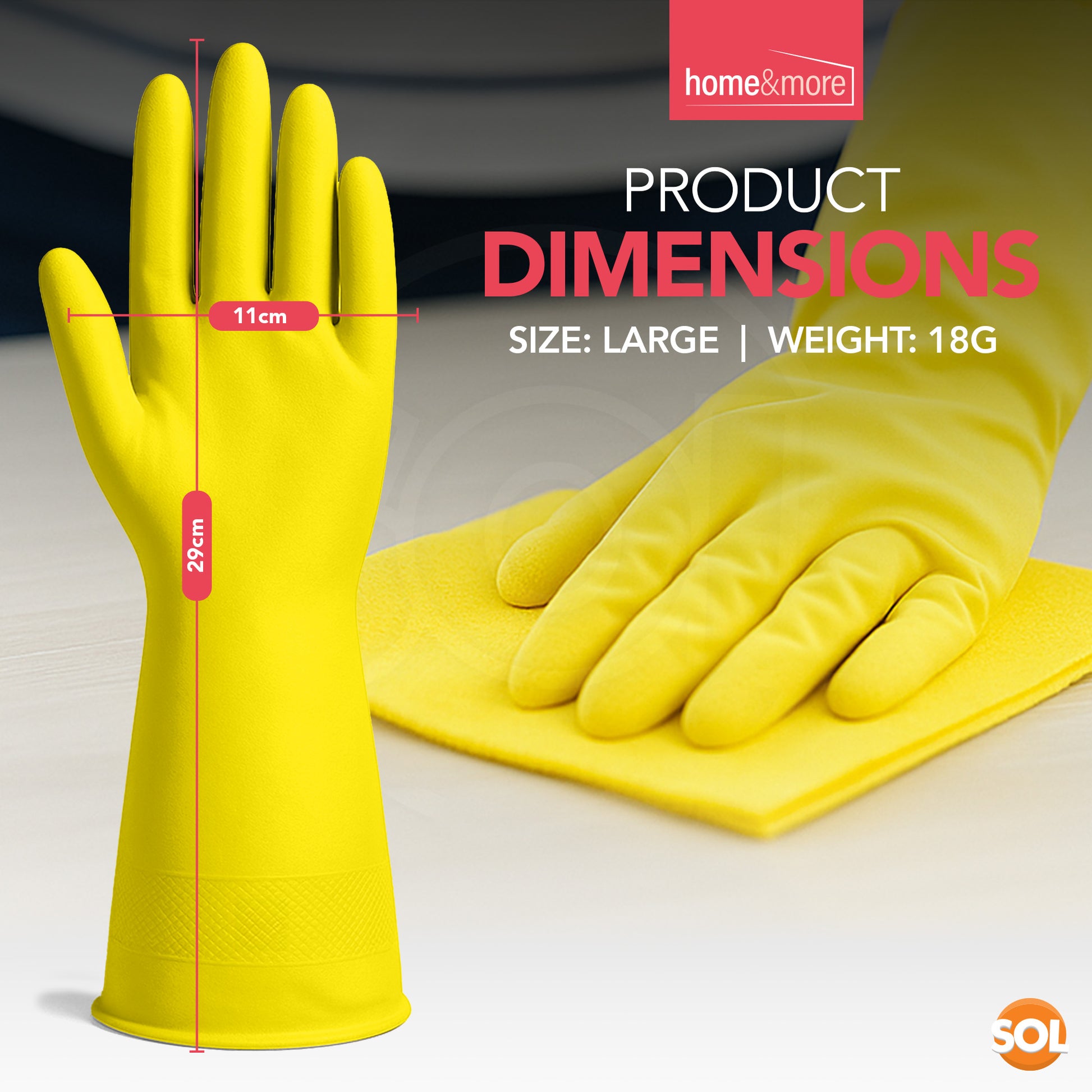 SIZE AND COLOUR - Each flocked lined air of yellow gloves are large in size, the most popular size and colour! The length of the kitchen glove not only keep your arms dry and prevents water from running into the gloves, but also enables the hands to keep moving flexibly.