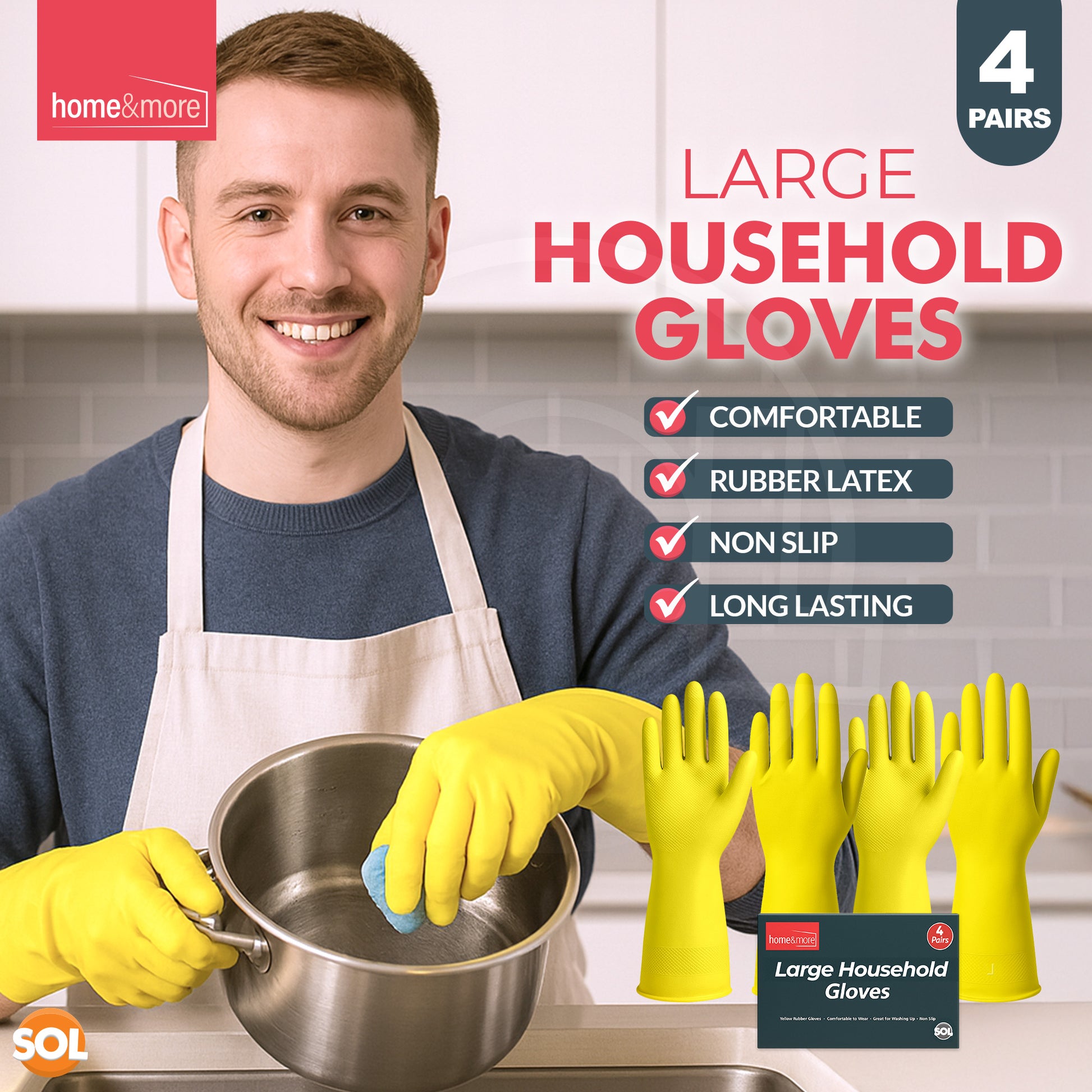 Rubber Gloves Large | Long Sleeve Household Washing Up | 4 Pairs