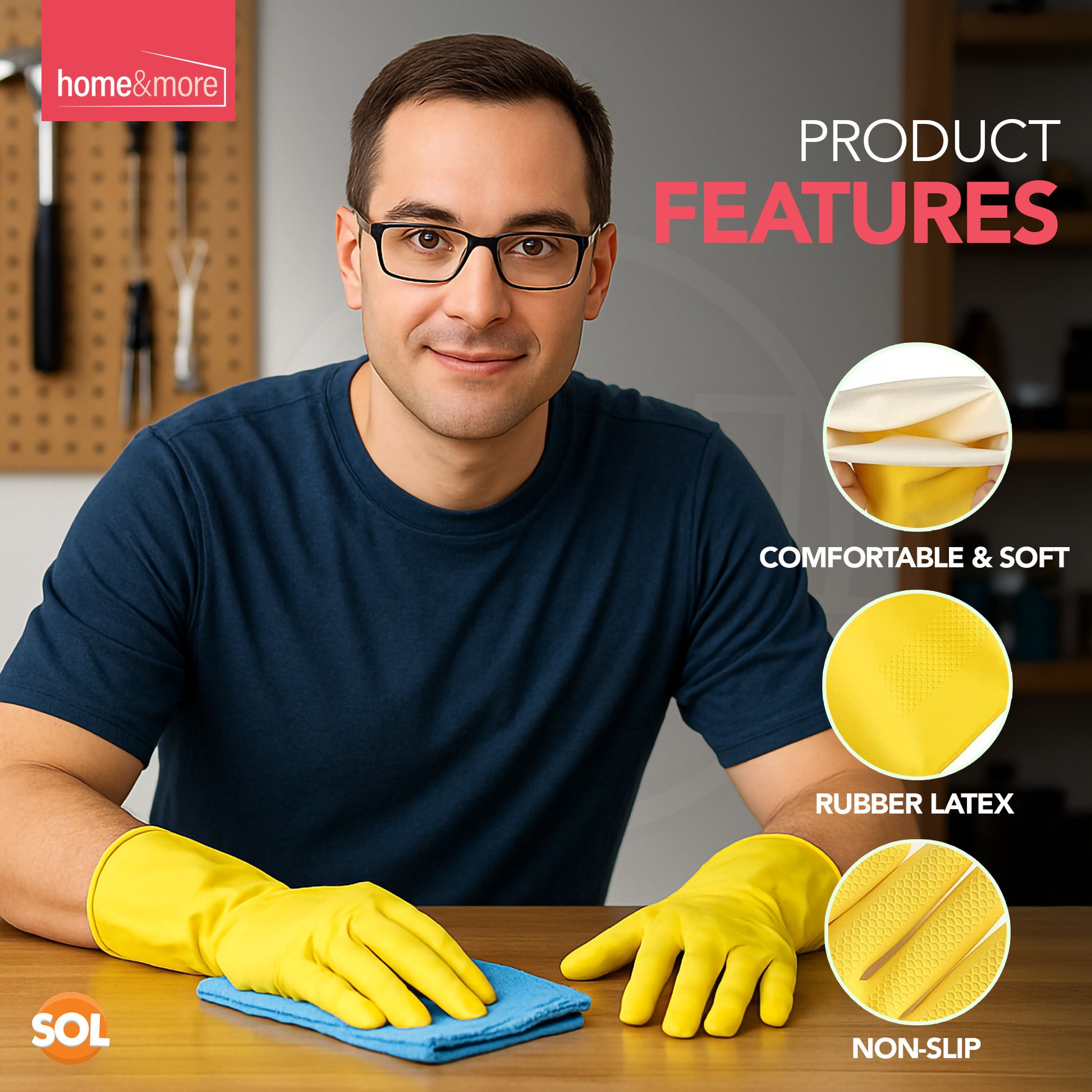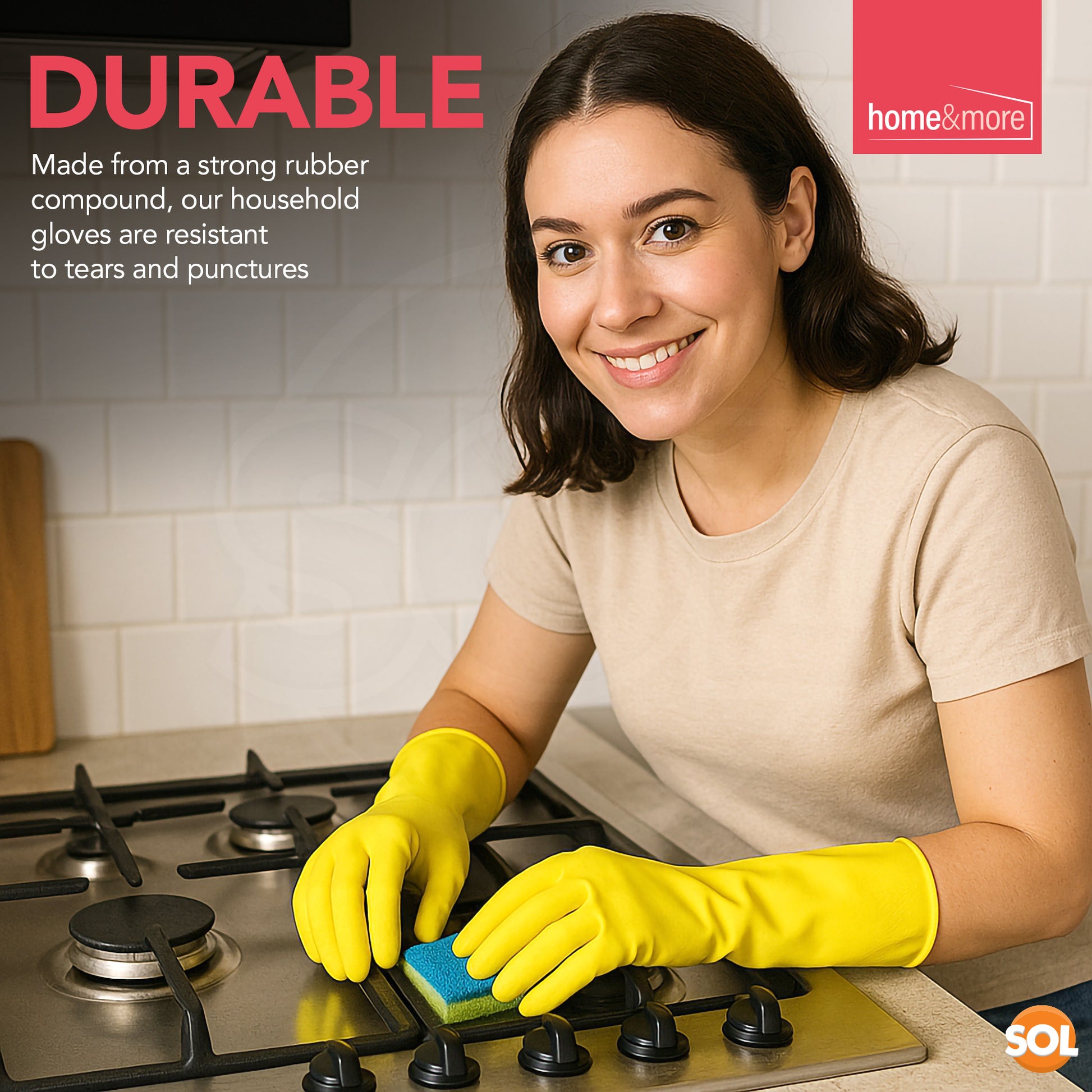 QUALITY – Our kitchen gloves are comfortable, strong and tough with a non-slip grip on the palm and fingers, which is especially useful as this increases friction ensuring a firmer grip and increased control. The dishwashing gloves have a soft interior for sensitive hands. The household gloves are made with natural latex and waterproof and provide excellent protection from hot water.