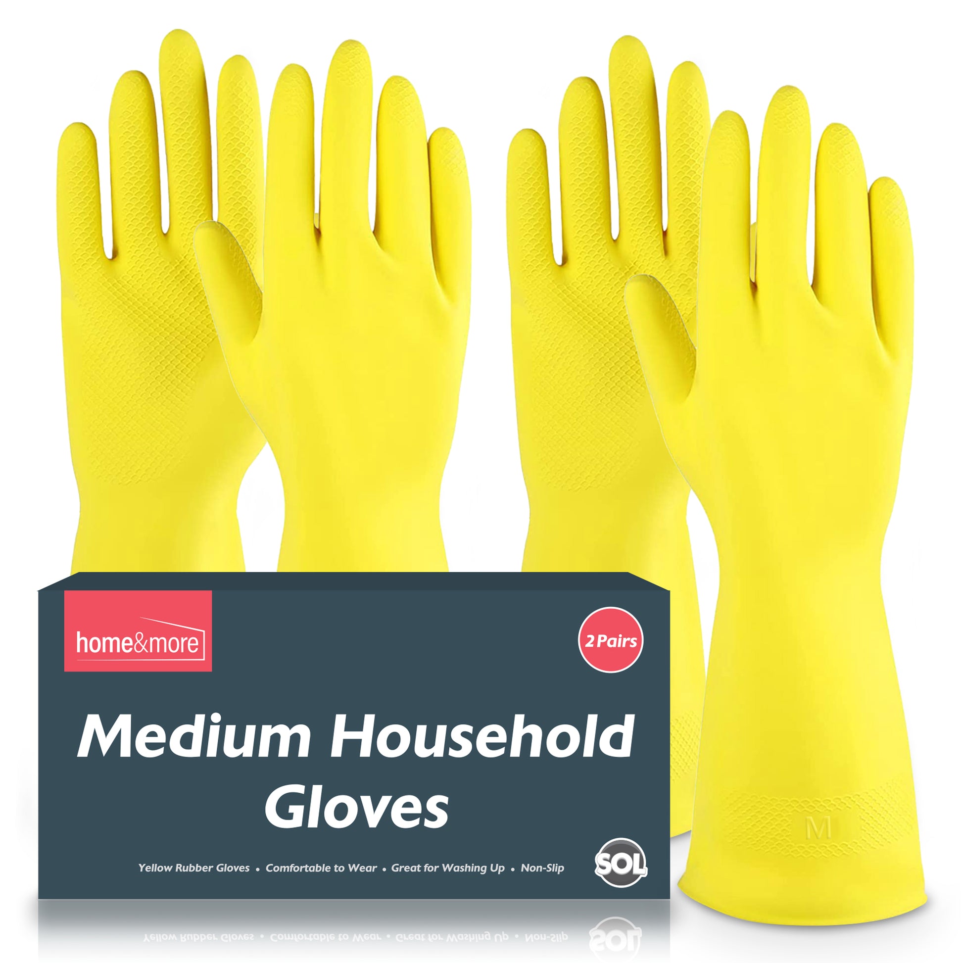 Rubber Gloves Medium | Long Sleeve Household Cleaning | 4 Pairs