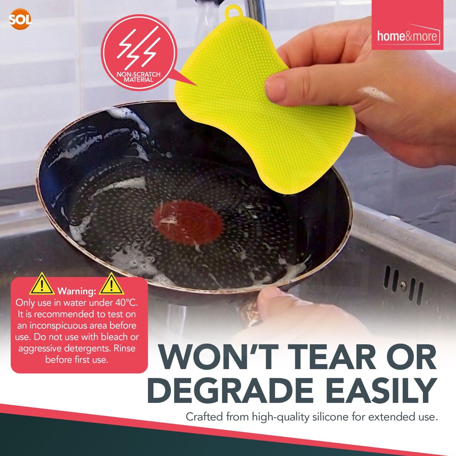 Non-Scratch Cleaning: These non scratch sponges are perfect for cleaning delicate surfaces. Use these silicone kitchen cleaning sponges on non-stick cookware, glass, and other sensitive materials without worrying about scratches.
