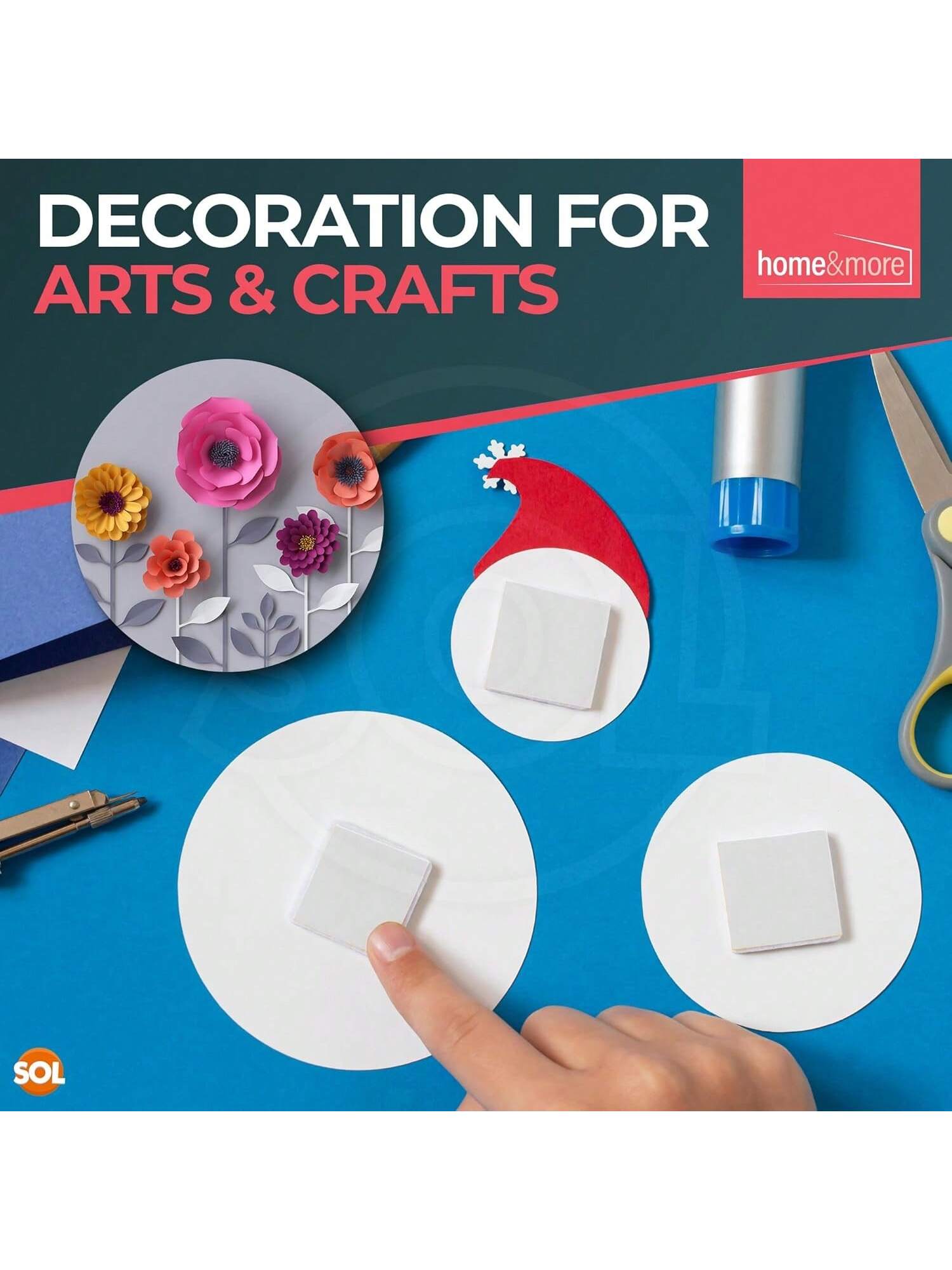 SOL 160pcs Interior Sticky Pads - 20mm Double-Sided Sticky Foam Pads For Wall Mounting, Card Making & Crafts - Heavy-Duty Square Adhesive Sticky Fixers