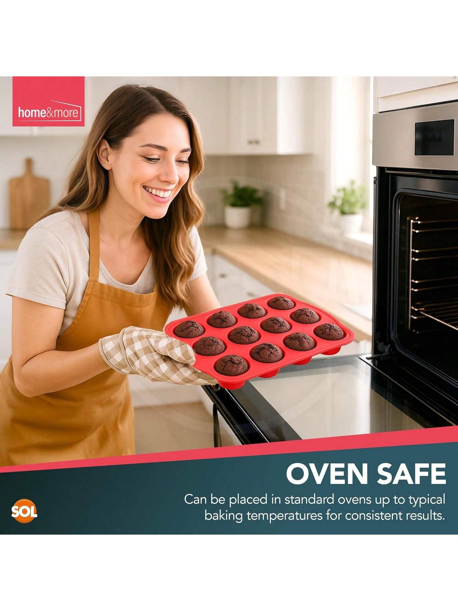 SOL 1pk Silicone Muffin Tray – 12 Cup Non-Stick Baking Mould For Cupcakes, Fairy Cakes, Mini Quiches & Bites – Flexible Bakeware For Oven Use, Easy Release & Quick Clean-Up