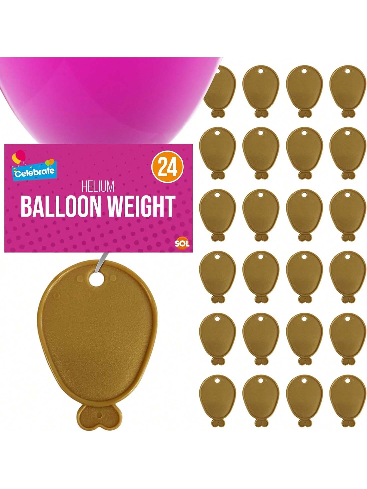 SOL 24pk Helium Balloon Weights - Gold Plastic Party Accessories - Perfect For Securing Balloons At Birthdays, Weddings, New Year - Heavy Duty 205g Weights For Decorations And Large Celebrations