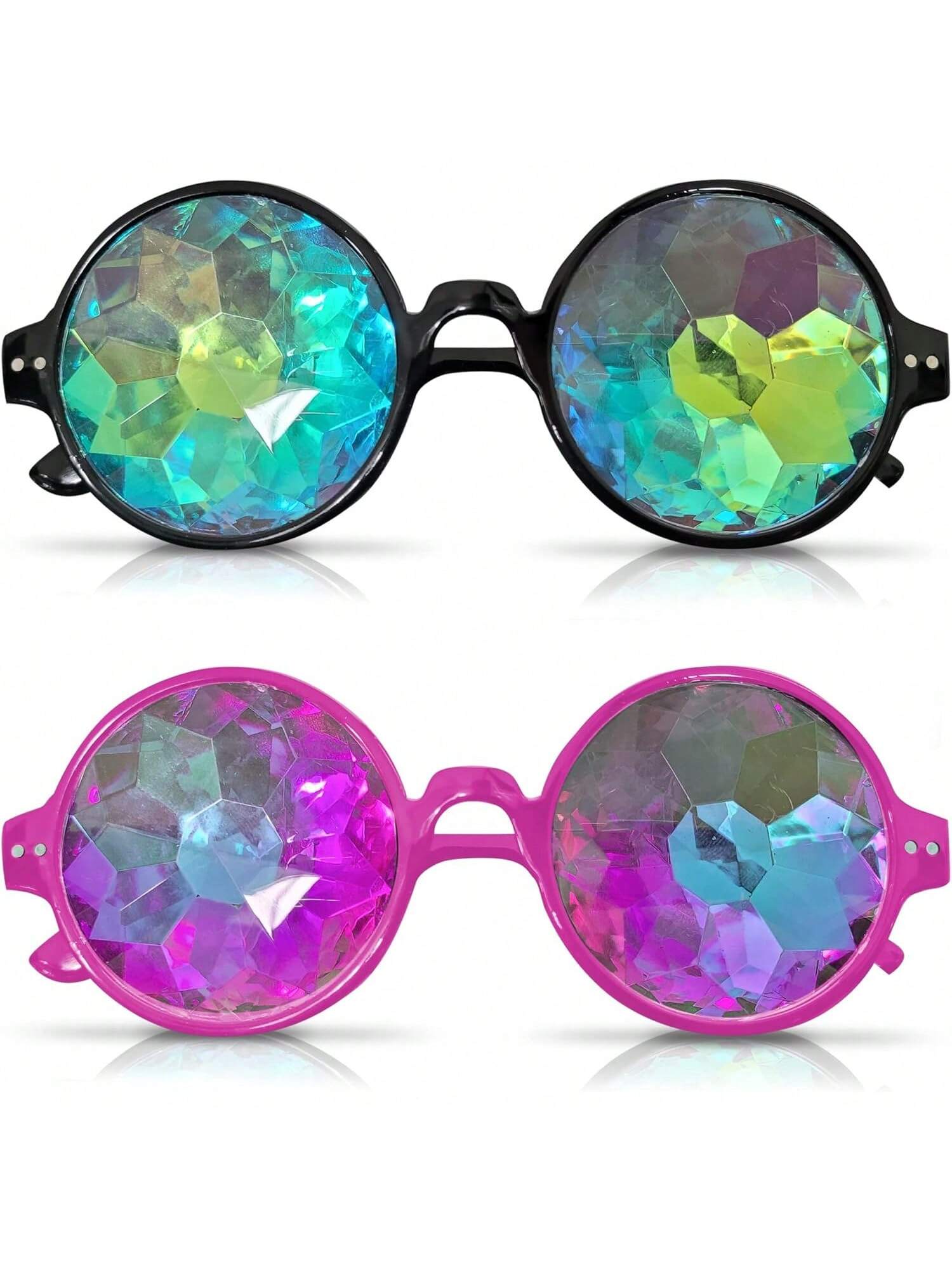 SOL 2pk Kaleidoscope Glasses For Rave Party Festivals. Durable Lenses For Funk Nights, Cosplay, Disco, Retro, Costumes, Light Shows, EDM, Carnivals & Street Events. Rainbow Prism Diffraction Goggles.