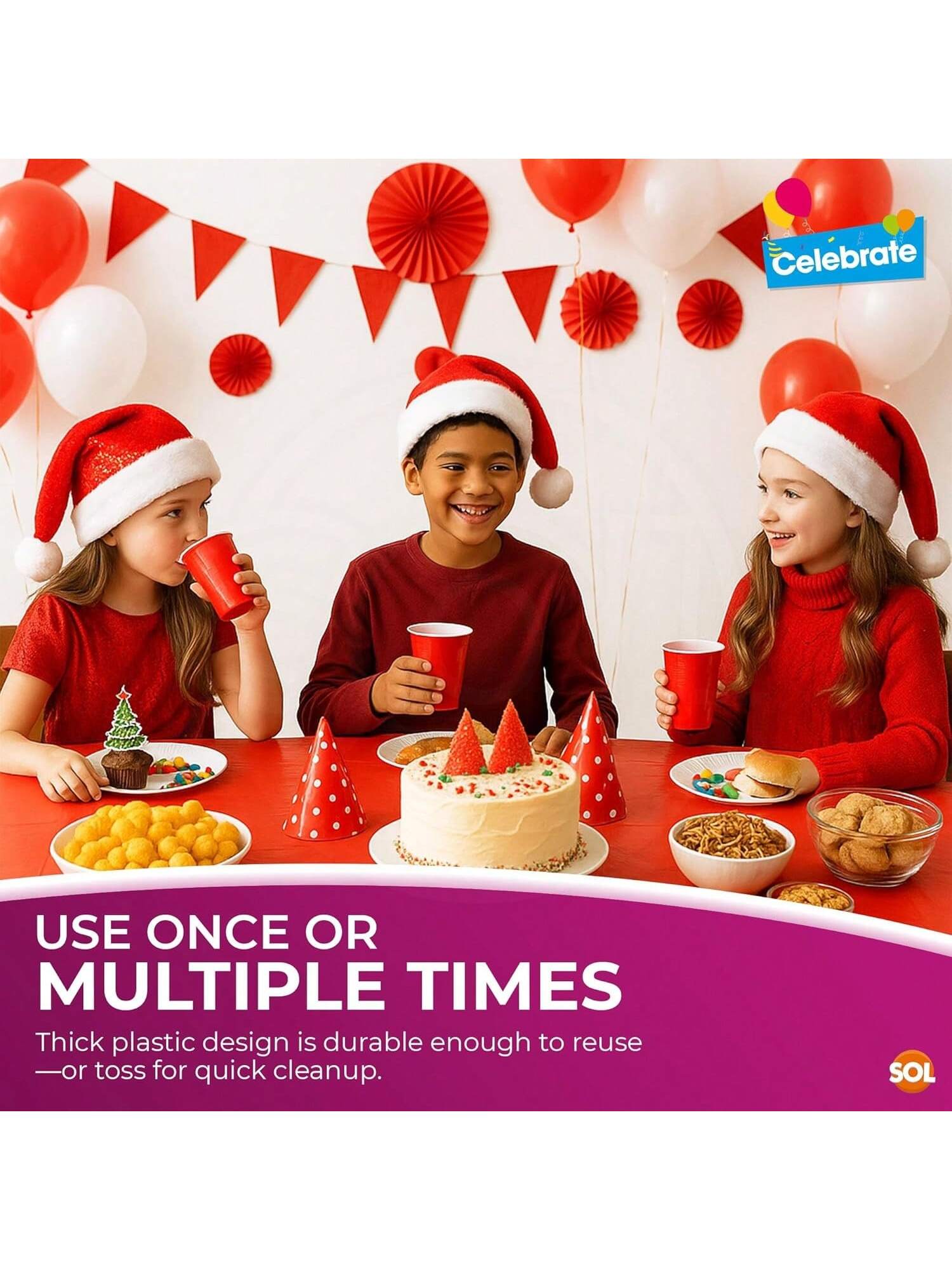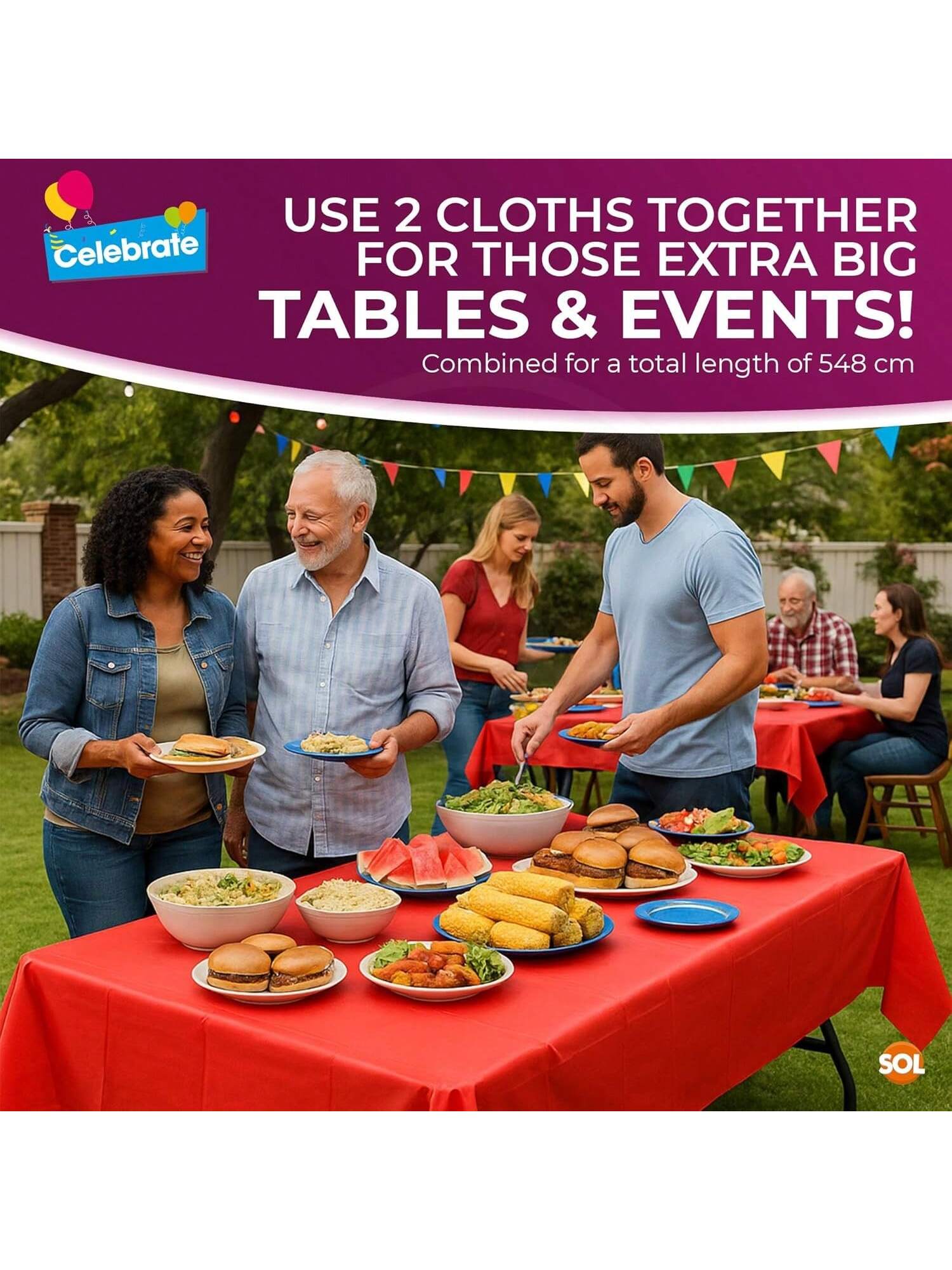 SOL 2pk Long Red Table Cloth Party 274x137cm Plastic Cover Disposable Tablecloths For Parties - Spill Protection - Great For Weddings, Buffets, Catering, Restaurants, Outdoor Events & Celebrations