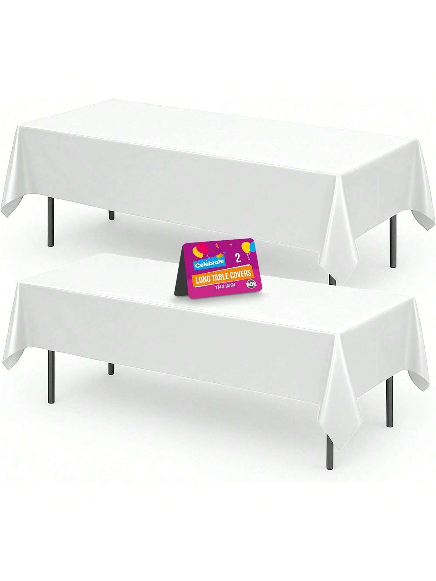 SOL 2pk Long White Table Cloth Party 274x137cm Plastic Cover Disposable Tablecloths For Parties - Heavy Duty Spill Protection - Opaque Design For Weddings, Buffets, Catering, Outdoor & Theme Events