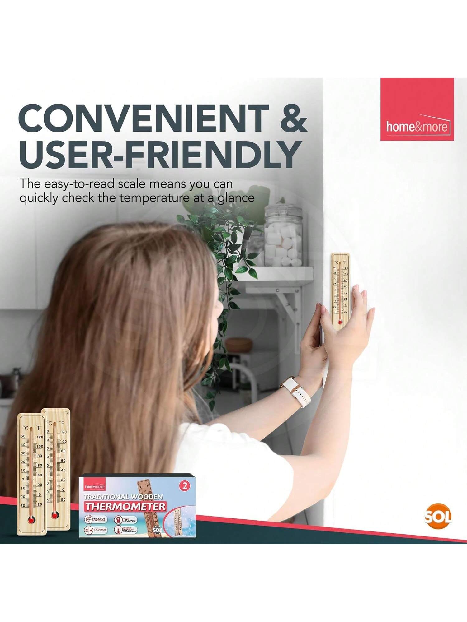 SOL 2pk Traditional Wooden Thermometer – Indoor & Outdoor Wall Temperature Gauge For Home, Garden, Greenhouse, Nursery, Office Or Patio – Accurate Wooden Thermometers For Room & Outdoor Monitoring