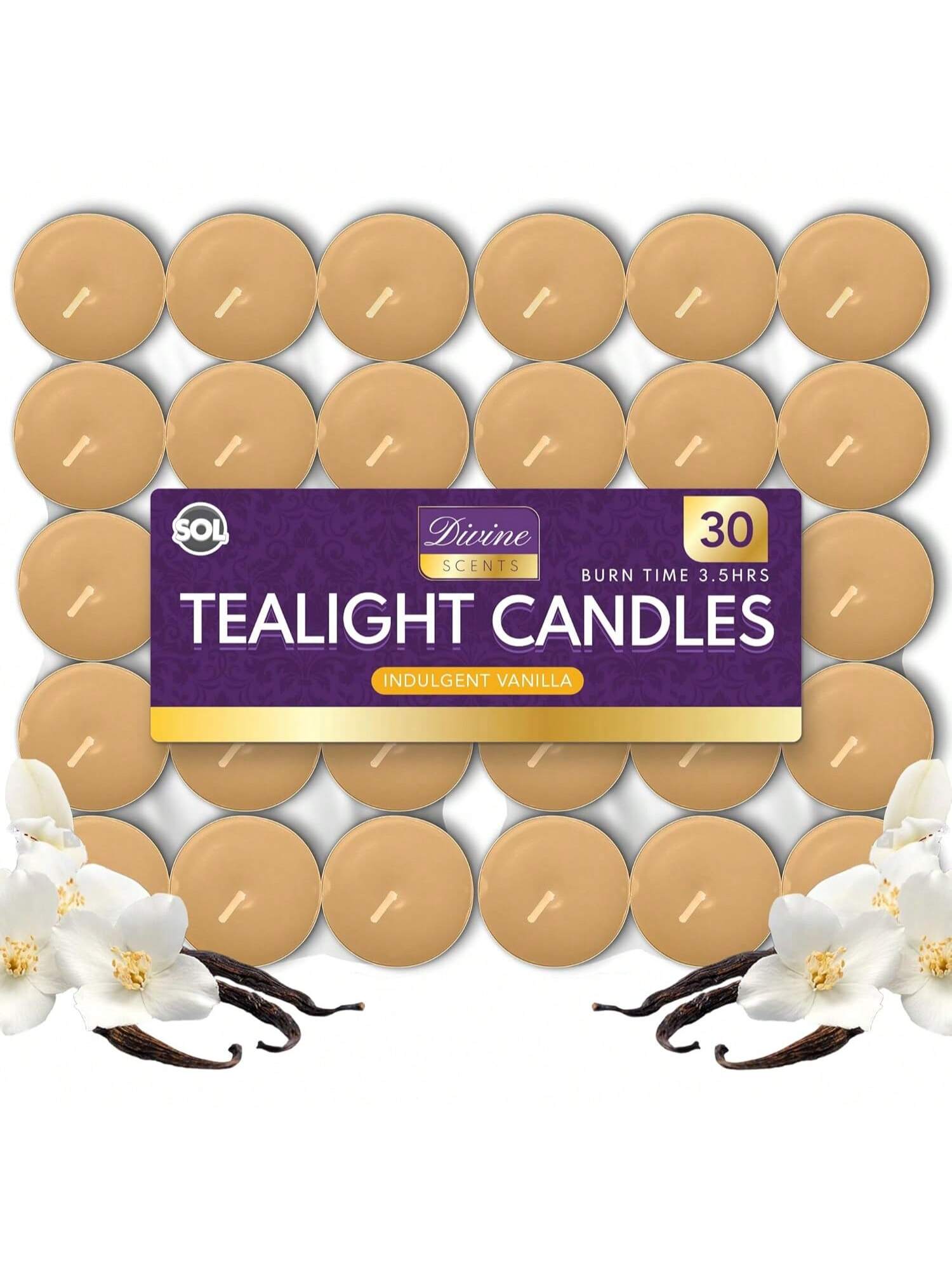 SOL 30pk Tea Light Candles Indulgent Vanilla – 3.5 Hour Burn Time, Scented Tea Lights Candles, Long-Lasting & Ideal Home Decor, Relaxation, Romantic Dinners, Weddings, Cosy Evenings & Special Occasion