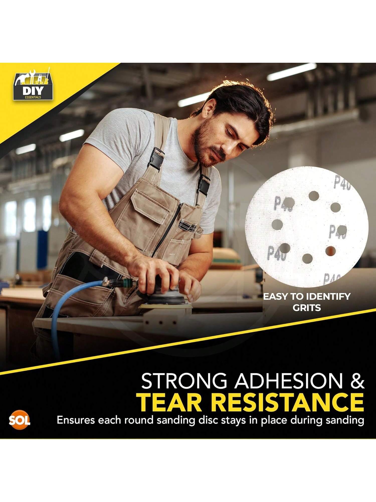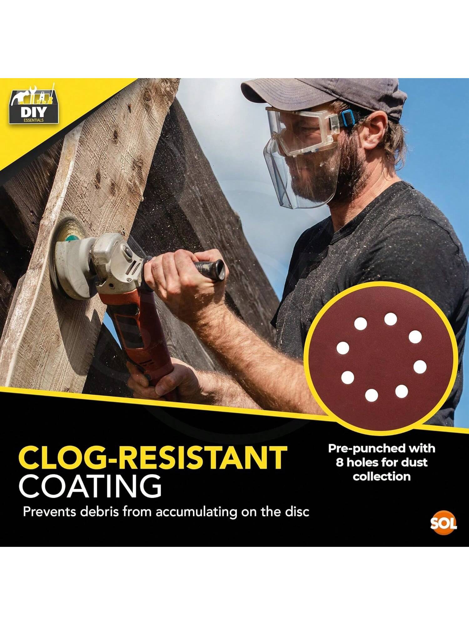 SOL 35pk Round Sandpaper 125mm - Assorted 40/60/80/120/180/240/320 Orbital Sanding Discs - Hook & Loop Sanding Discs For Electric Sander - Durable Abrasive Sheets For Wood, Metal And DIY Projects