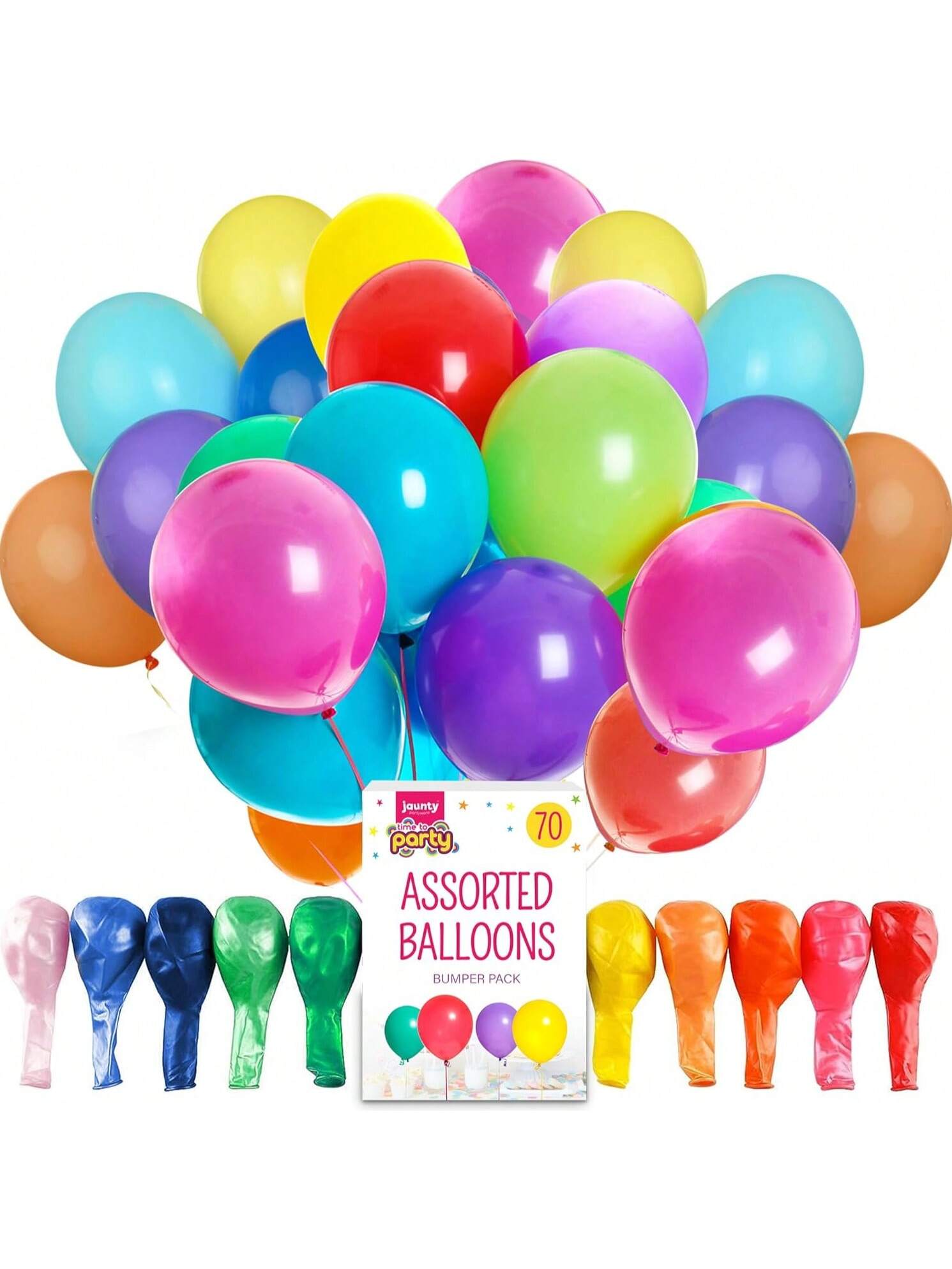Jaunty Partyware 70pk Premium Latex Multicoloured Balloons, 10.5 Inch Size - Vibrant Party Balloon for Birthdays, Baby Showers & Kids' Parties - Ideal for Balloon Arch, Party Games & Decorations