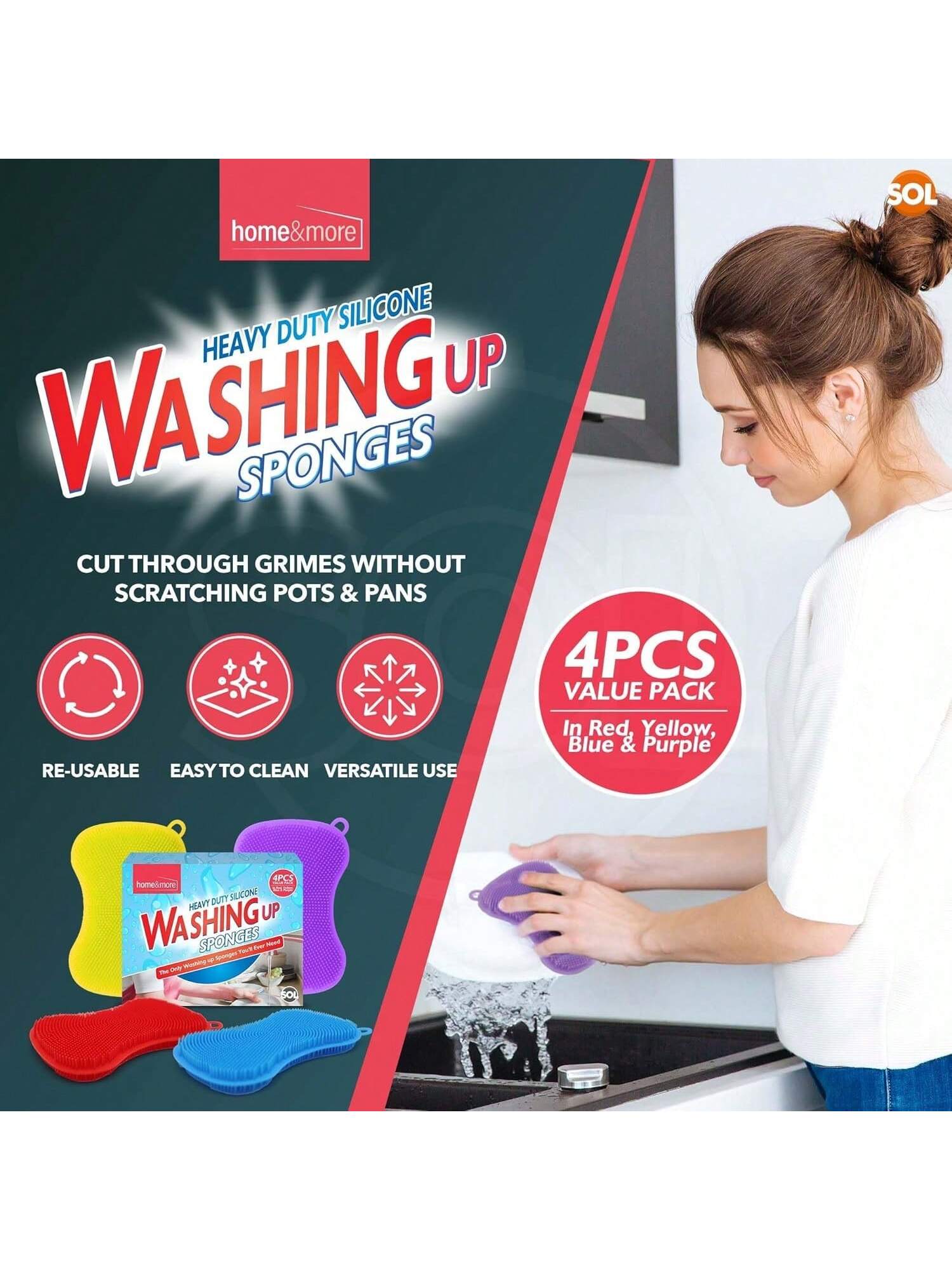 SOL 4 Pack Heavy Duty Silicone Washing Up Sponges – 7.8 X 12 Cm Reusable Non-Scratch Kitchen Sponge For Cleaning Pots, Pans And Dishes – Durable Quick-Drying Multipurpose Scrub In Vibrant Colours