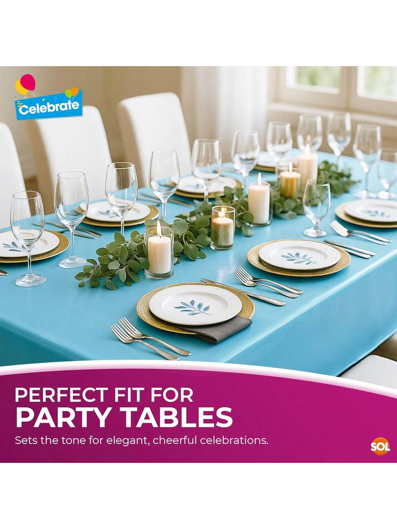 SOL 4pk Long Blue Table Cloth Party 274x137cm Plastic Cover Disposable Tablecloths For Parties - Spill Protection - Great For Weddings, Buffets, Catering, Restaurants, Outdoor Events & Celebrations